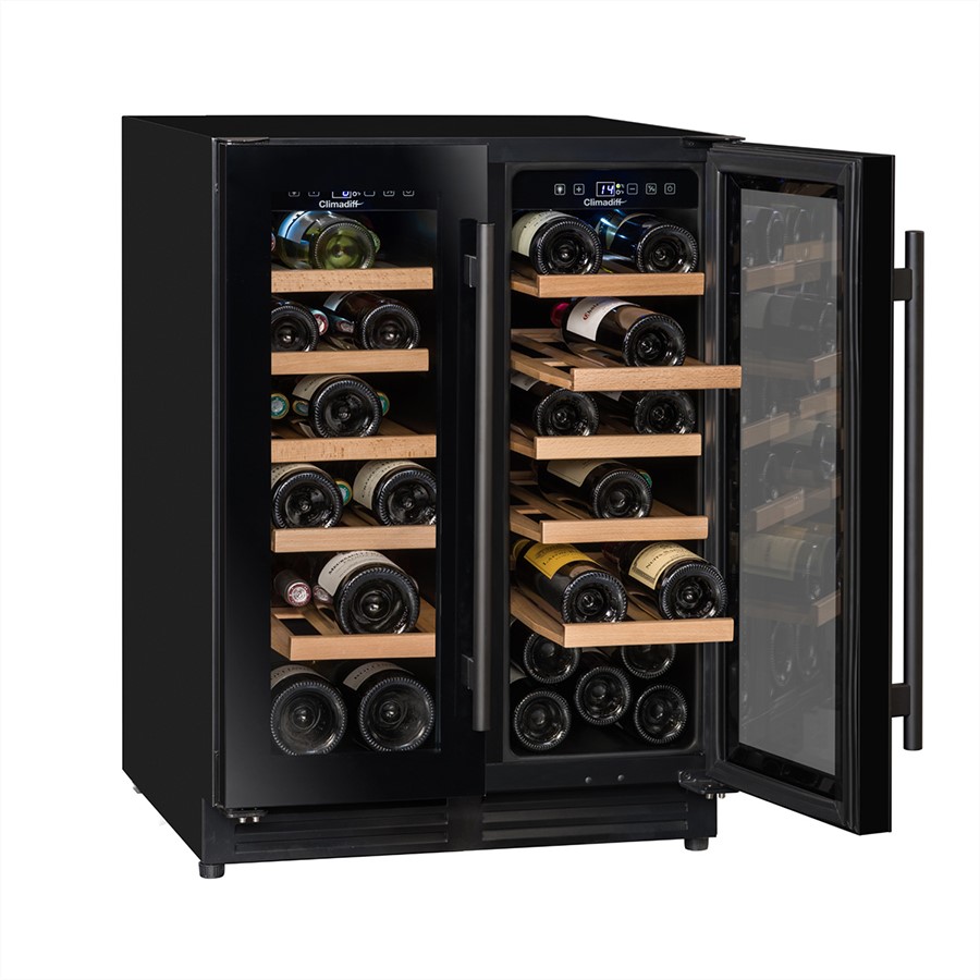 The Climadiff CBU40D1B is a sleek built-in dual-zone wine cellar with a stylish undermount design and double doors, making it a perfect fit for any modern kitchen. With 10 wooden shelves, it can store up to 40 bottles, keeping your favorite wines elegantly within reach. Ideal for wine lovers who value both convenience and sophistication.