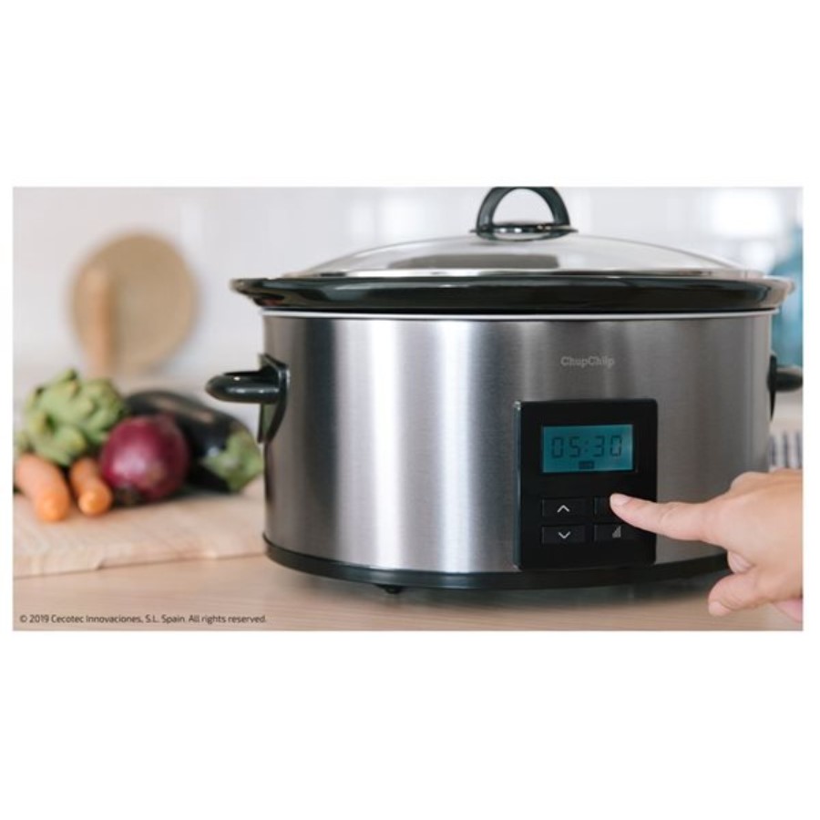 This Cecotec Slow Cooker is a versatile and affordable option for those looking to prepare slow-cooked meals with ease. It has a 5.5-liter capacity, making it ideal for families or larger meal prep. The ceramic pot is durable and retains heat well, while the removable design simplifies cleaning. With its three heat settings—low, high, and keep warm—you can adjust cooking times and temperatures to suit your recipes. The transparent lid allows for easy monitoring without lifting the lid and losing heat. However, it lacks advanced features like a digital timer, which could be a downside for those who prefer more automation.