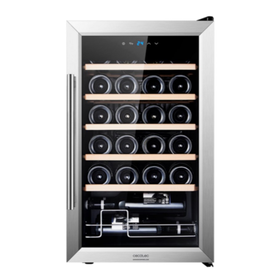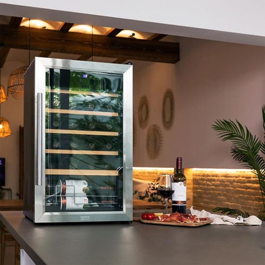 The Cecotec Wine Cooler Bolero GrandSommelier is an elegant and efficient wine cooler designed to store and preserve wines at their optimal temperature. It features adjustable temperature control, allowing you to customize the cooling environment for different wine types. The sleek design, with a glass door and interior lighting, makes it a stylish addition to any kitchen or bar. Its spacious interior can accommodate a variety of bottle sizes, and the quiet operation ensures minimal noise. Perfect for wine enthusiasts looking for a functional and visually appealing storage solution.
