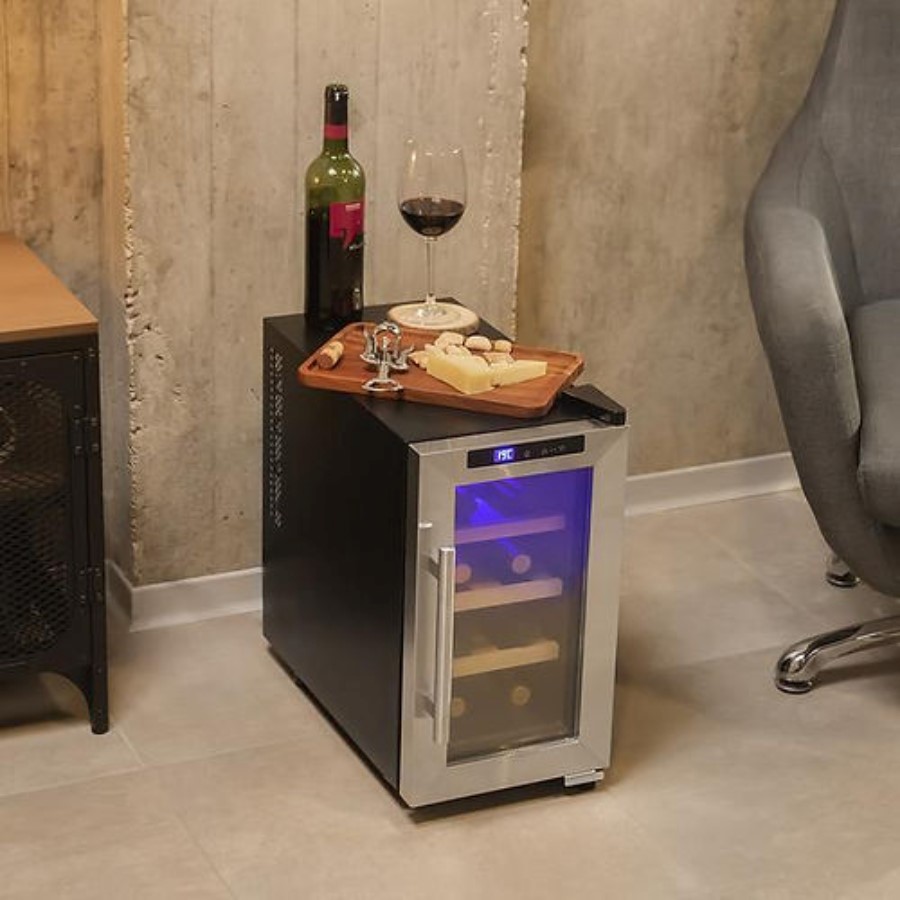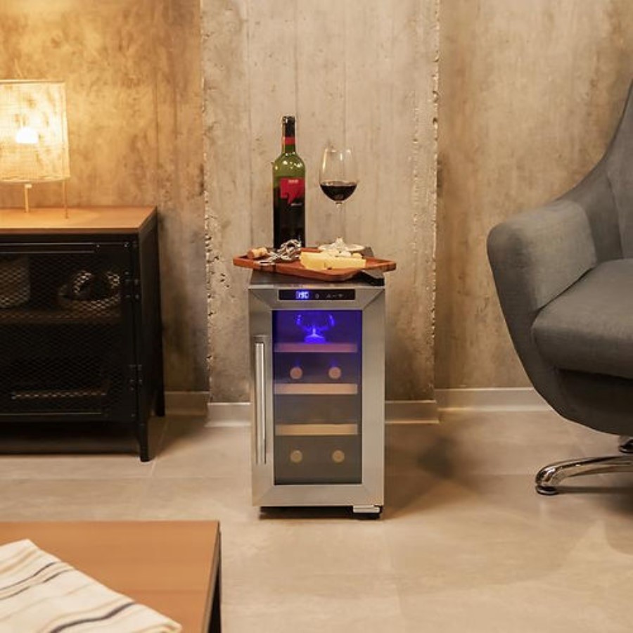 The Cecotec Wine Cooler Bolero GrandSommelier is an elegant and efficient wine cooler designed to store and preserve wines at their optimal temperature. It features adjustable temperature control, allowing you to customize the cooling environment for different wine types. The sleek design, with a glass door and interior lighting, makes it a stylish addition to any kitchen or bar. Its spacious interior can accommodate a variety of bottle sizes, and the quiet operation ensures minimal noise. Perfect for wine enthusiasts looking for a functional and visually appealing storage solution.