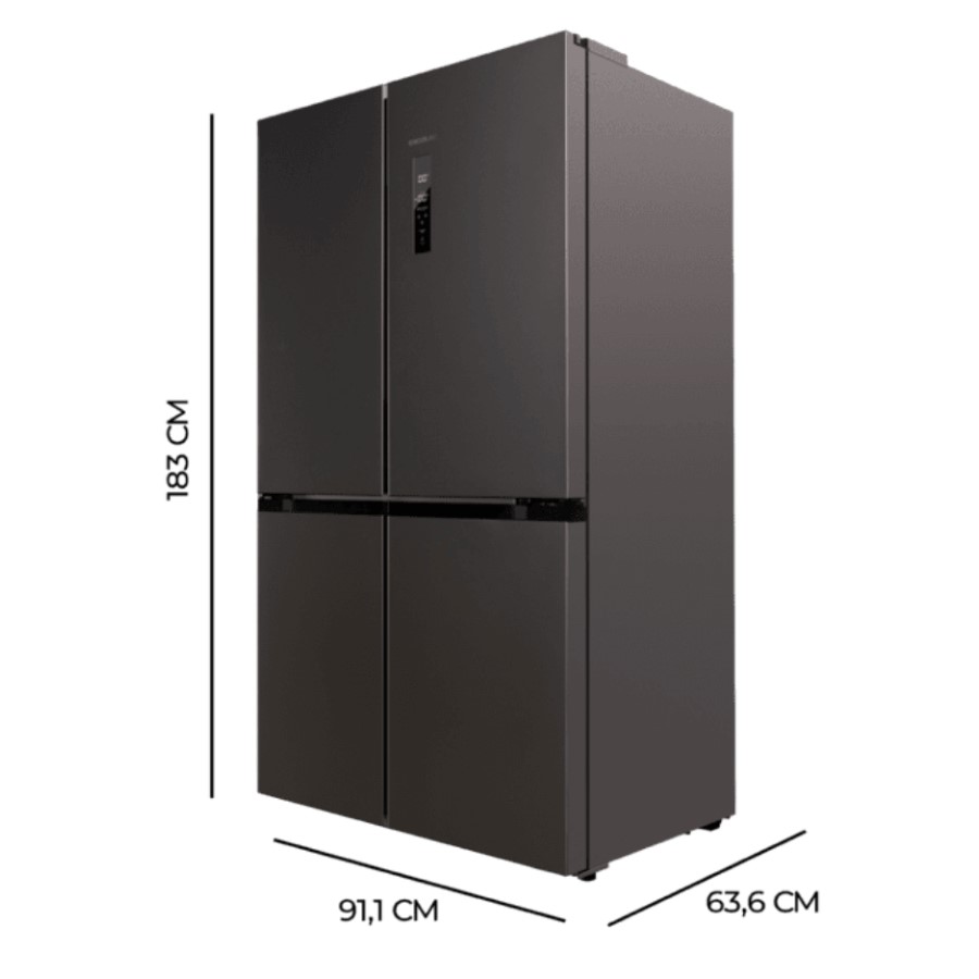 A stunning centerpiece for any modern kitchen, the Bolero Cool Market 4D 564 Glass E delivers a whopping 564 L capacity housed in a sleek, 4 door Cross Door format (91 × 70.6 × 183 cm). Equipped with Inverter Plus motor technology and Energy Class E, it ensures powerful cooling with energy efficiency. The Total NoFrost system prevents ice buildup, while Metal Cooling, Multi Airflow, Fast Cooling, and Fast Freezing features guarantee even temperature distribution and rapid chilling or freezing when needed. A door display panel lets you monitor and adjust settings without opening the doors, and a built in water dispenser delivers cool refreshment at a click. From stylish form to top performance, this fridge is built to elevate both your space and its contents.