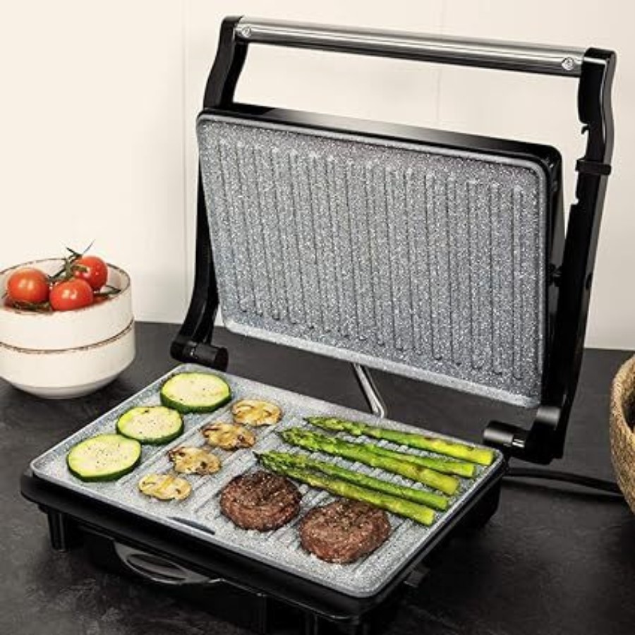 Known for its high-performance heating elements, this grill provide even cooking and adjustable temperature controls for precise results. This grill features non-stick surfaces with rockstone coating for easy cleaning, as well as options for both indoor and outdoor use. With modern designs and practical features like removable plates and drip trays, this grill is ideal for preparing a variety of meals, from grilled meats to sandwiches, making it a great addition to any kitchen.