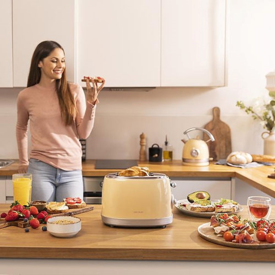 This toaster is a stylish and efficient kitchen appliance designed for perfect toasting. Featuring adjustable browning levels, it allows you to achieve the ideal toast for any preference. The toaster is equipped with wide slots, making it suitable for various bread types, including thicker slices and bagels. With features like a defrost, reheat, and cancel function, it offers flexibility and convenience. Its sleek design complements any kitchen decor, and the removable crumb tray ensures easy cleaning. This Cecotec toaster combines functionality and modern aesthetics for a great toasting experience.
