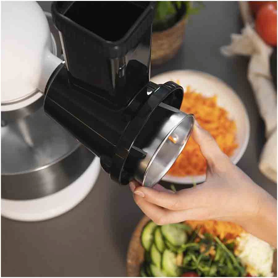 Discover the Cecotec Twist & Fusion Salad Accessory—a sleek, stainless-steel attachment that transforms your stand mixer into a versatile vegetable preparation powerhouse. It features three interchangeable drum blades for fine grating, coarse shredding, and slicing—perfect for cheese, carrots, cucumbers, potatoes, and more