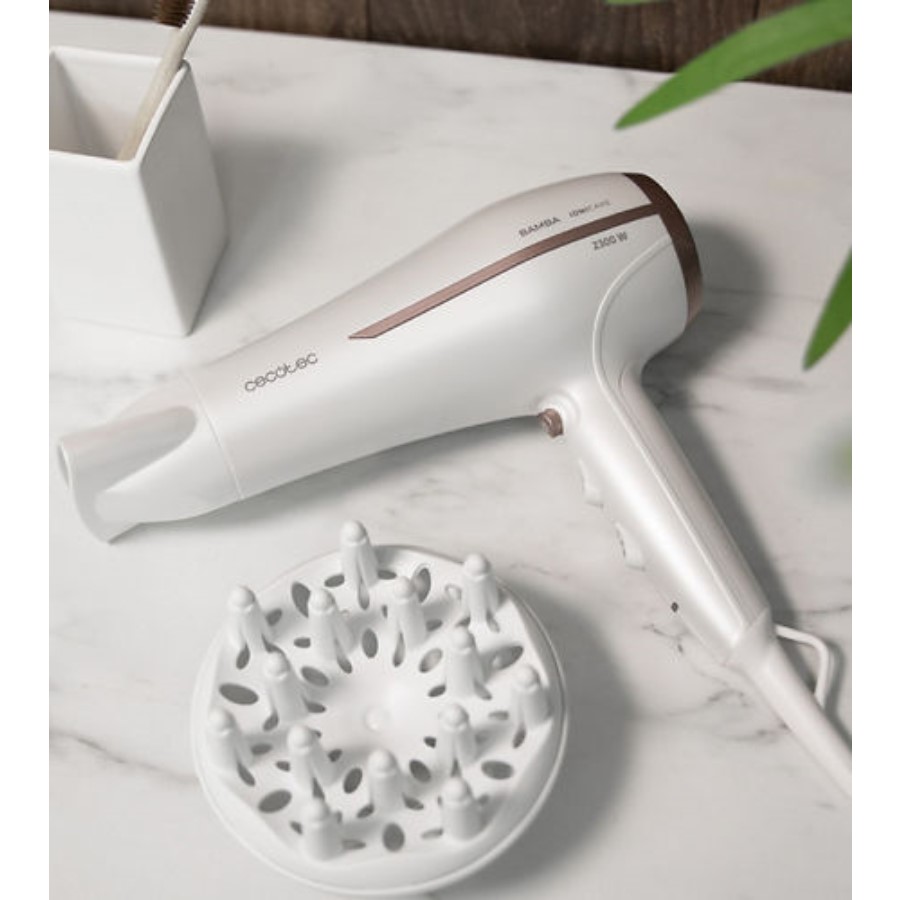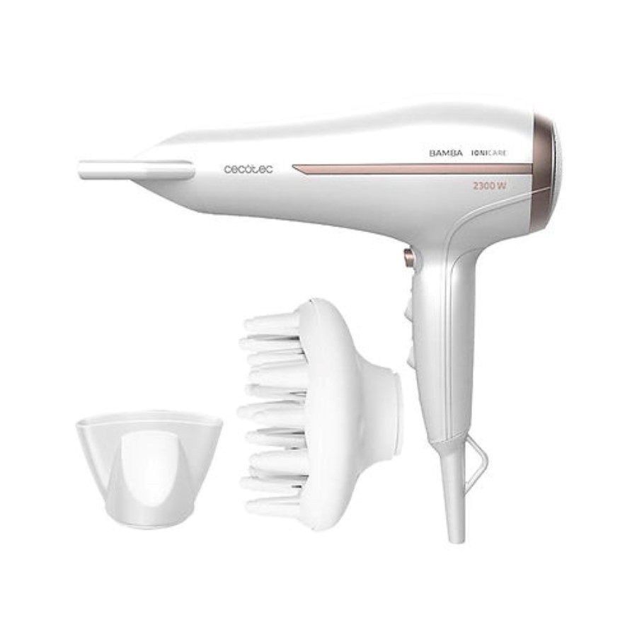 The Cecotec Bamba IoniCare 5200 Aura is a high-performance hair dryer equipped with ionic technology and a powerful 2300W motor. Designed to reduce frizz and enhance shine, this dryer features a ceramic-coated grill that evenly distributes heat, ensuring smoother, healthier hair. It includes a diffuser for defining curls and enhancing natural texture, along with a concentrator nozzle for precise styling. The device also has various heat and speed settings, allowing for customizable drying experiences to suit different hair types and styles.