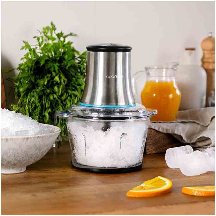 Experience powerful and precise chopping with the Cecotec ChopBeat 2000 Vindaloo Glass Electric Chopper — featuring a robust 500 W motor and four ultra-sharp stainless steel blades that effortlessly slice, dice, and pulverize vegetables, meats, and even ice in seconds for restaurant-quality results