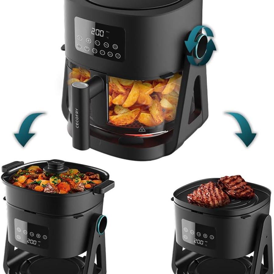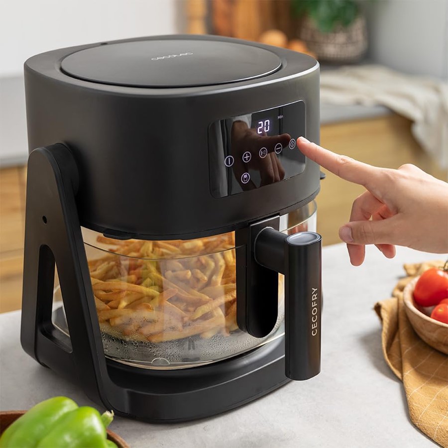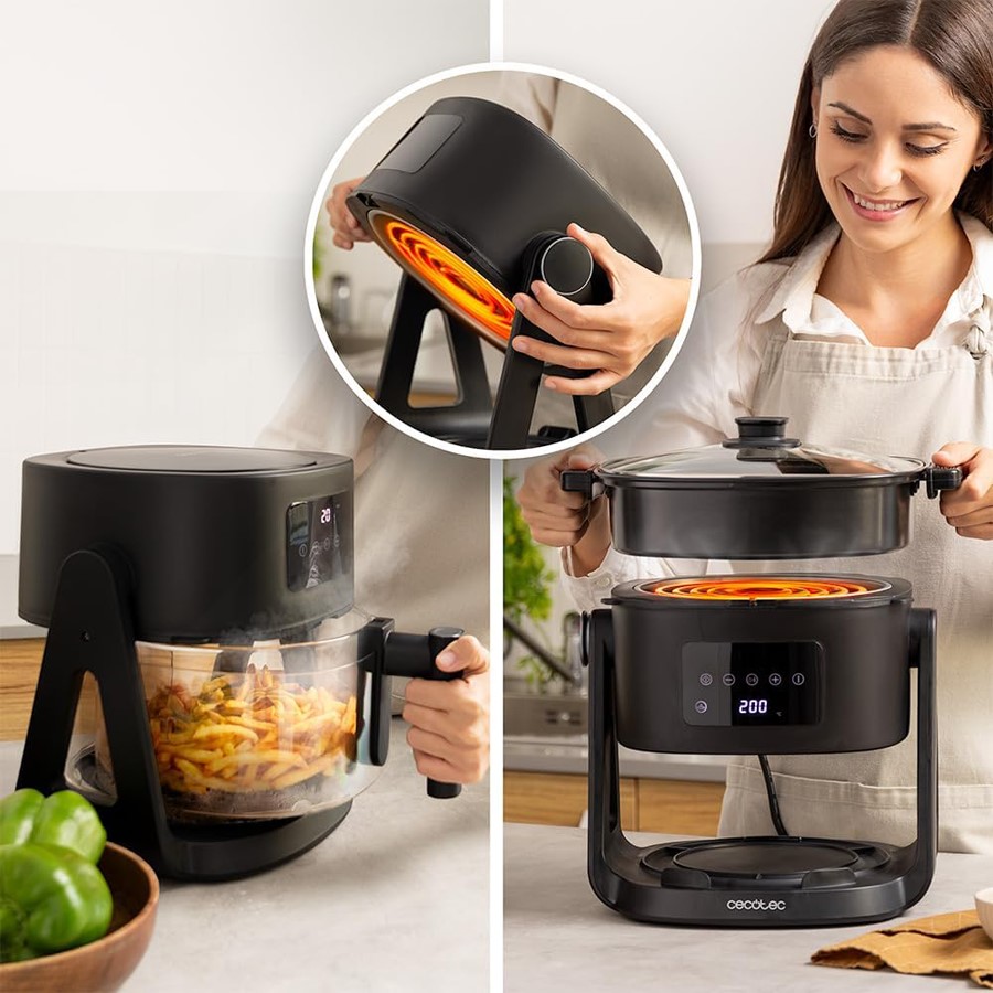 The Cecotec Cecofry Flip & Grill 4500 is a versatile 4.5L air fryer that combines efficiency and innovation for healthier cooking. Featuring a unique flip-and-grill function, it allows you to air fry, bake, grill, and roast with minimal oil, delivering crispy and delicious results. Its intuitive digital display, adjustable temperature control, and timer make it user-friendly, while the non-stick basket ensures easy cleaning. Perfect for preparing a variety of meals with up to 85% less fat, this air fryer is an ideal choice for healthy and convenient cooking.