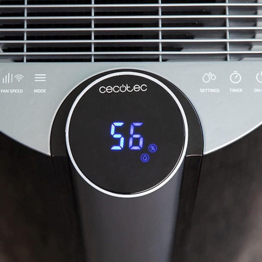 The Cecotec Dehumidifier Big Dry 9000 is a powerful and efficient appliance designed to control humidity levels in large spaces. With a sleek white design, it can remove up to 20 liters of moisture per day, making it ideal for rooms up to 200 m². It features adjustable humidity settings, a digital display, and a timer function for convenient operation. The dehumidifier also includes a large water tank with an auto-off system when full, and the option for continuous drainage. Its compact design, quiet operation, and energy efficiency make it a great addition to any home or office.
