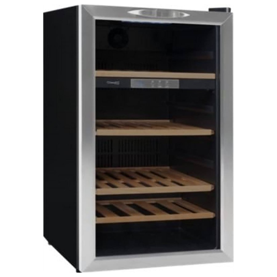 The Climadiff CLS52 is a single-zone freestanding wine cooler designed to store up to 52 bottles in optimal conditions. With a sleek black finish, it features a 230V power supply, a Type G plug, and a modern, space-efficient design. Perfect for wine enthusiasts, it ensures your collection is kept at the ideal serving temperature while adding elegance to any space.