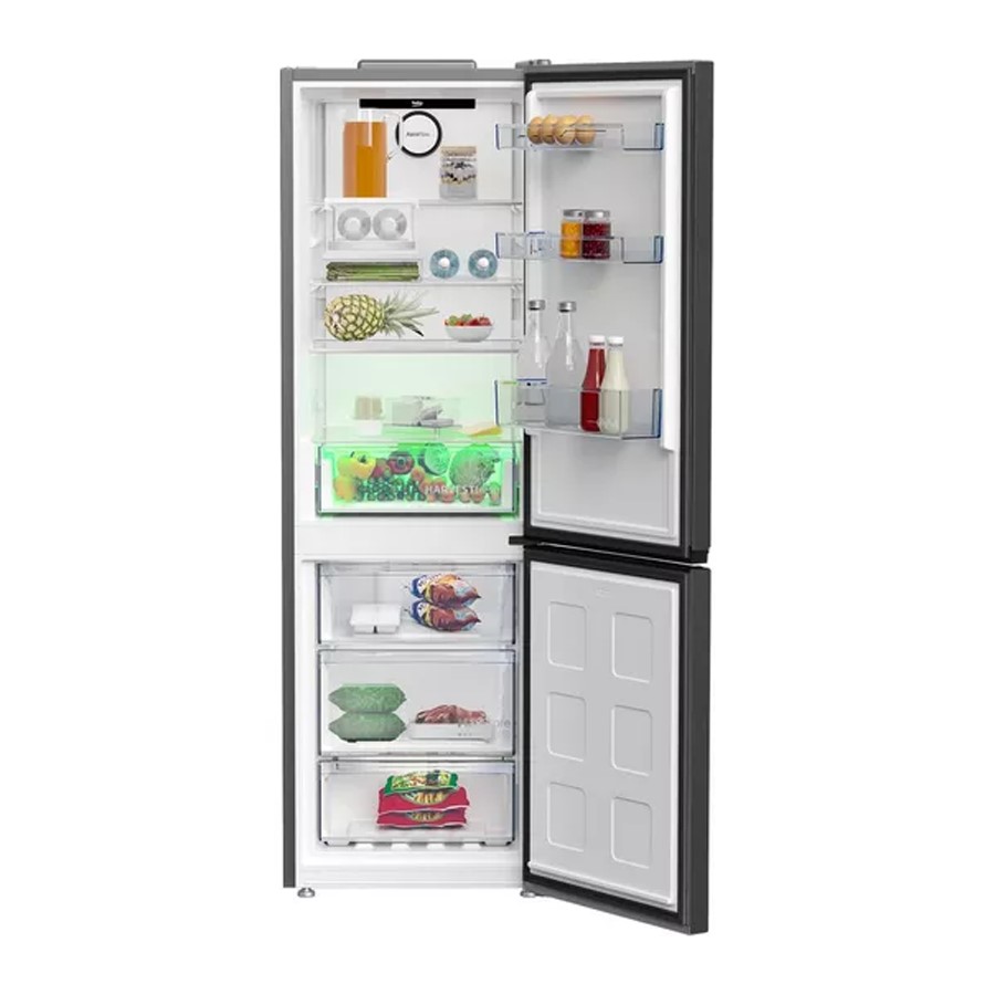 Experience freshness like never before with the BEKO Pro HarvestFresh 60/40 Fridge Freezer in sleek Black Steel. Featuring innovative HarvestFresh technology, it preserves vitamins in fruits and vegetables for extended freshness. With a spacious interior, frost-free operation, and advanced cooling systems, your food stays fresher for longer. Enjoy the convenience of adjustable shelves and the energy efficiency of ProSmart Inverter Compressor. Upgrade your kitchen with this stylish and advanced appliance that keeps your food at its best.