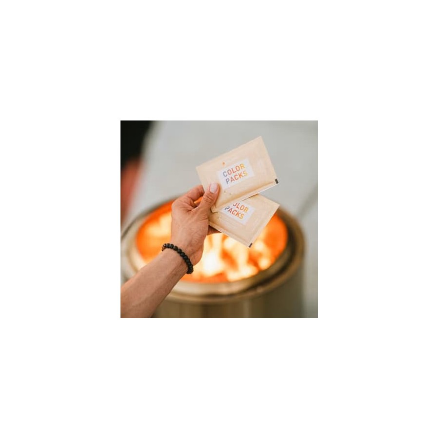 Transform your fire pit into a mesmerizing light show with Solo Stove Color Packs. Simply toss a pack into your flames and watch as vibrant hues of blue, green, purple, and yellow dance across the fire. Each pack burns for up to an hour, providing uninterrupted entertainment for your gatherings. Ideal for creating unforgettable memories, Color Packs are easy to use—no opening or assembly required. With a shelf life of 30 years, they're ready whenever you want to add a pop of color to your fire. Please note, Color Packs are not food-safe; ensure food is roasted before adding to the fire. Elevate your next outdoor experience with Solo Stove Color Packs and captivate your guests with a stunning visual display.