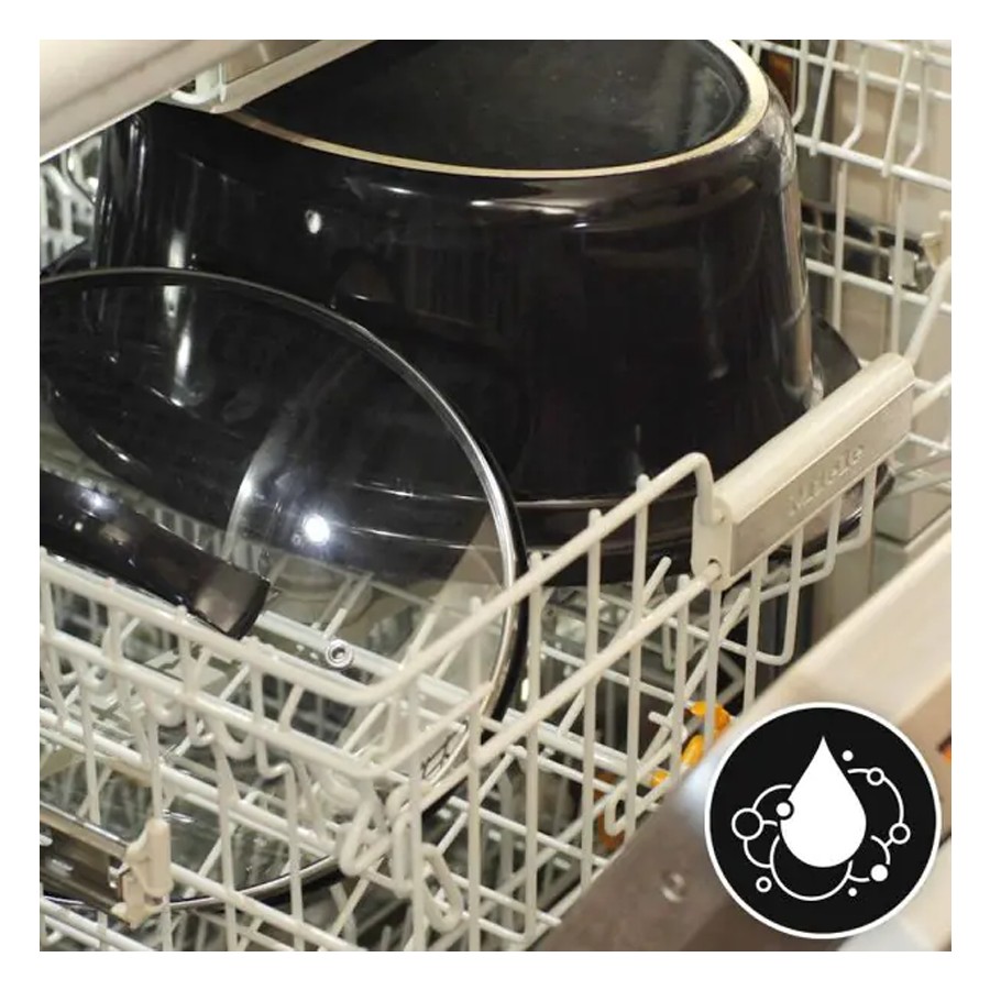 Both the removable ceramic bowl, glass lid, and stirring paddles are dishwasher safe, simplifying cleanup.