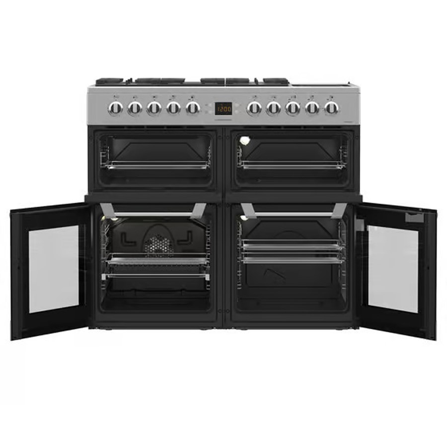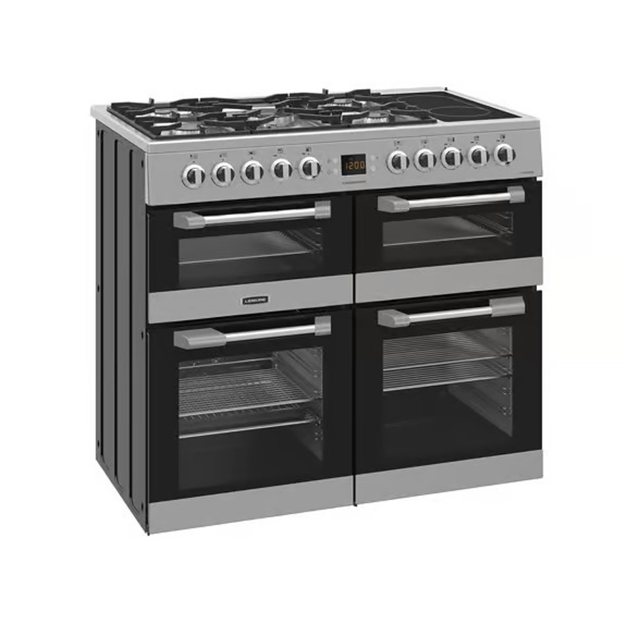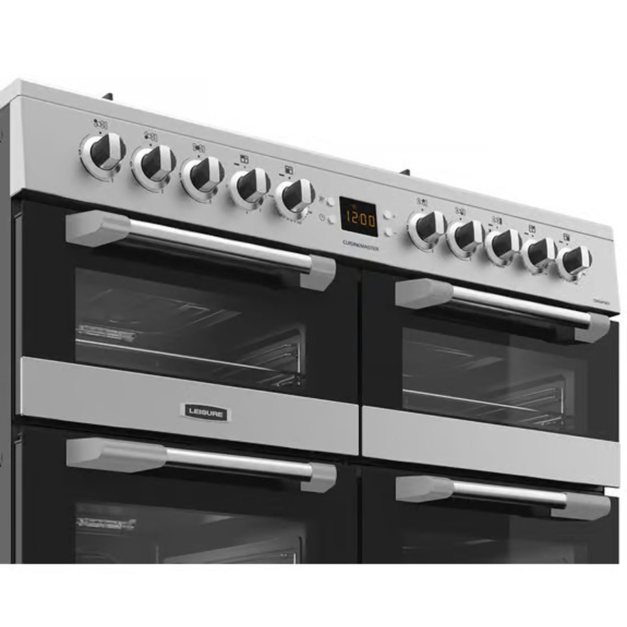 Leisure Cuisinemaster CS100F520X - Unleash your culinary creativity with the striking design of this 100cm dual fuel range cooker. With three separate ovens, including a slow cooking setting, and a dedicated grill, you have the ultimate flexibility to prepare multiple dishes simultaneously. The five-burner gas hob, featuring a wok burner, adds further versatility, allowing you to stir-fry your favourite spicy rice noodles to perfection.