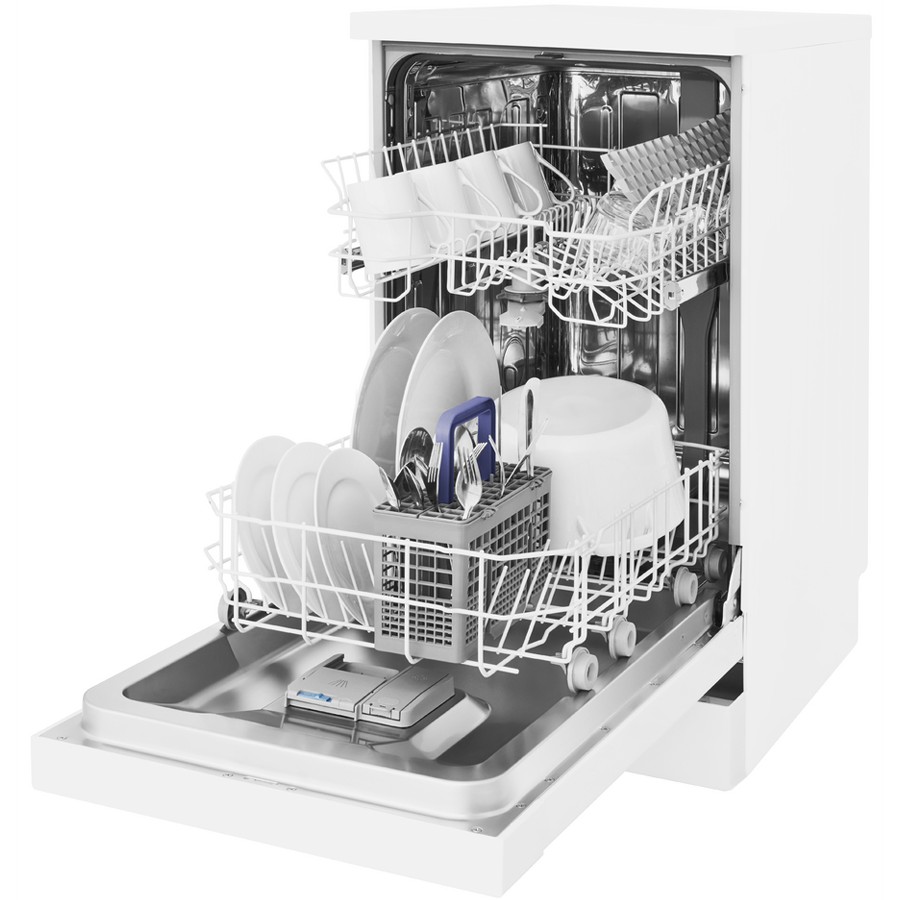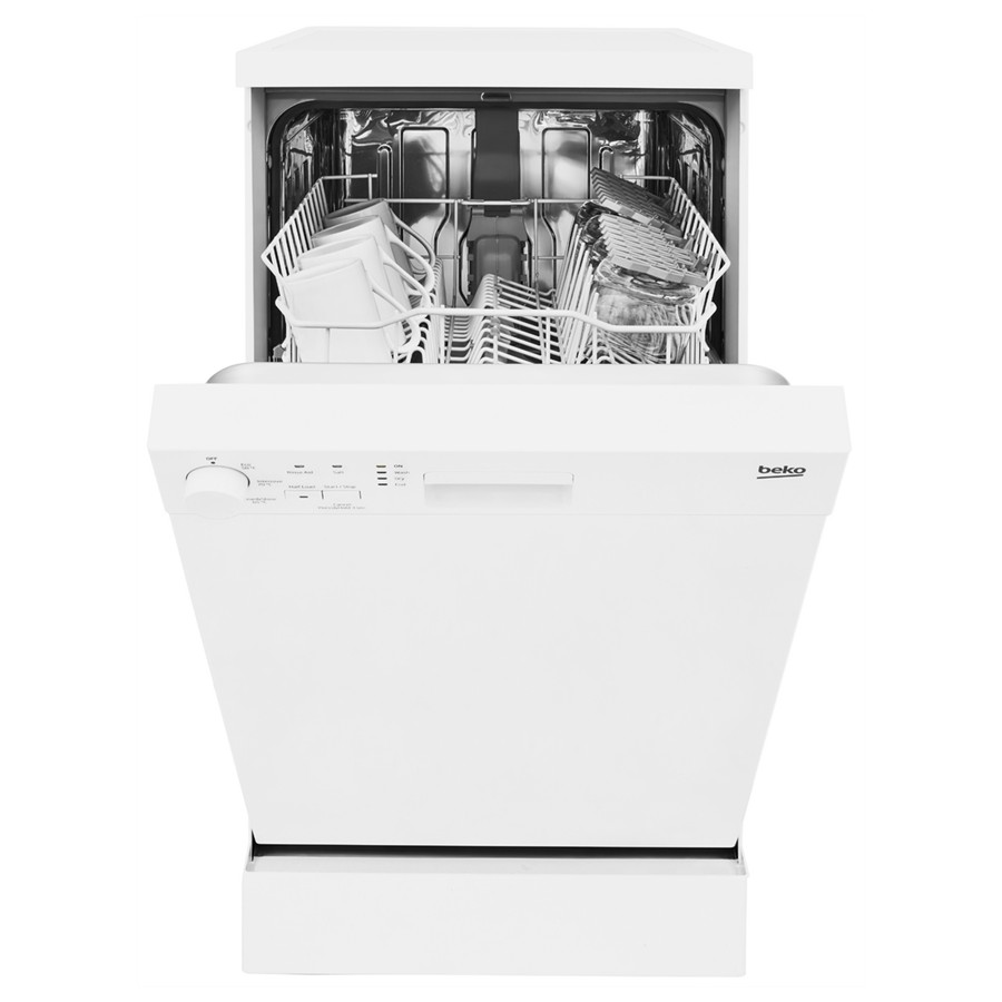 The Beko DFS04R11W is a slimline 10-place setting dishwasher, perfect for smaller kitchens while delivering powerful cleaning performance. With 4 wash programs, including a 30-minute quick wash and intensive cycle, it ensures spotless results for every load. The Half Load function saves water and energy for smaller washes, while the removable cutlery basket adds flexibility. Operating at a quiet 49 dB, it’s efficient yet discreet. With a sleek 45cm width, this dishwasher is an ideal space-saving solution without compromising on performance.