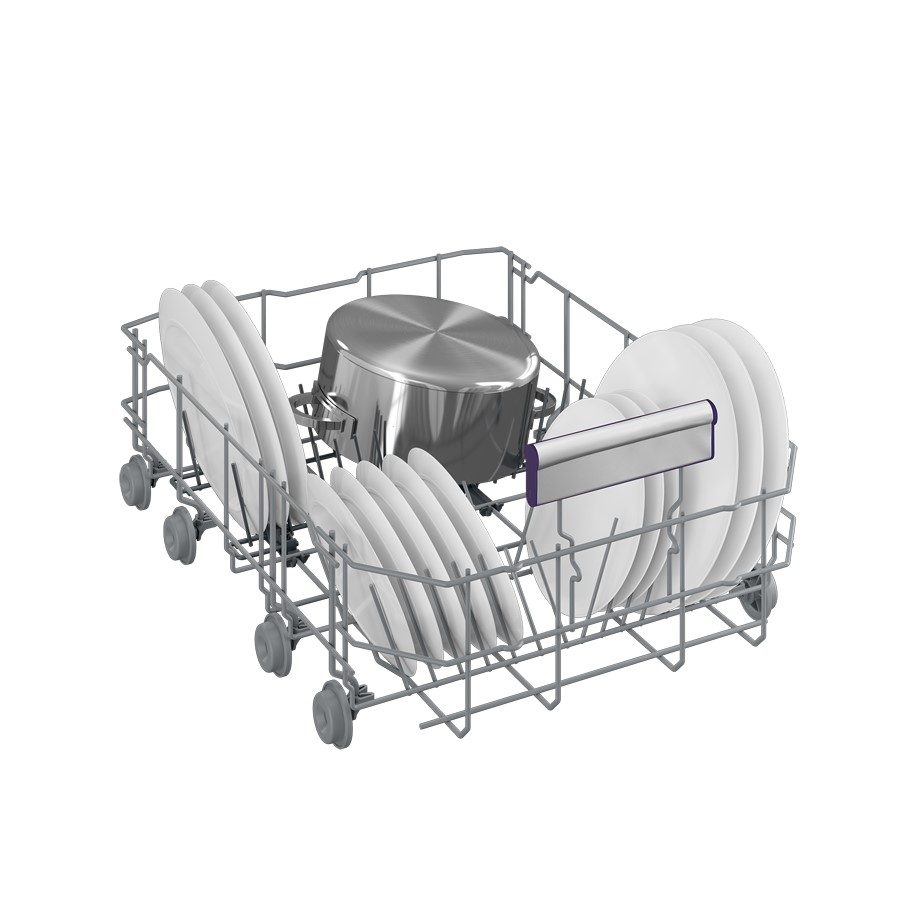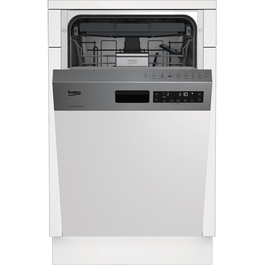 The Beko DSS28121X slimline semi-integrated dishwasher offers powerful cleaning with 11 place settings and an adjustable upper basket for maximum flexibility. With 8 wash programs, including Eco 50°C, Intensive 70°C, and GlassCare 40°C, it handles everything from delicate glassware to tough stains. AquaIntense® technology ensures deep cleaning, while Fast+ speeds up cycles without compromising performance. Operating at a quiet 46 dBA, it features a sleek fingerprint-free stainless steel finish and uses just 8.7L of water per cycle for efficiency. With extra drying, a half-load option, and a 24-hour time delay, it’s the perfect blend of style, performance, and convenience.