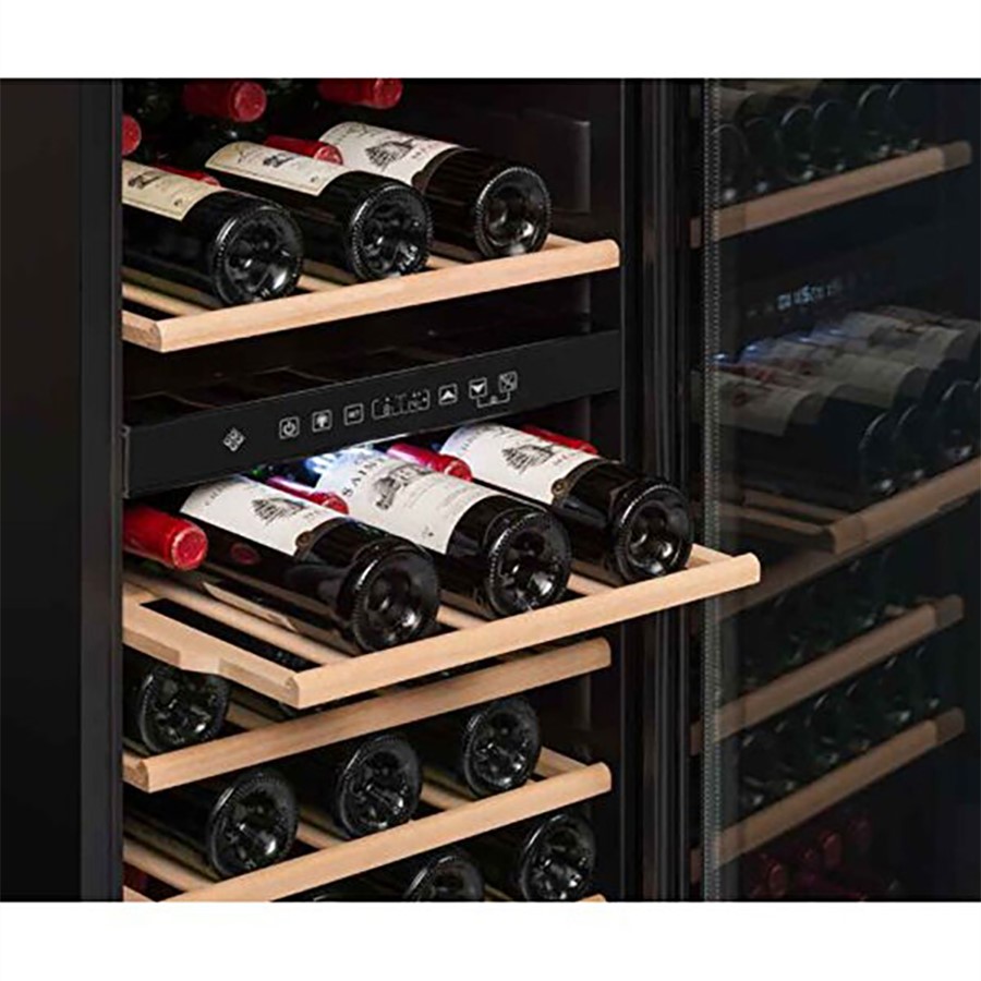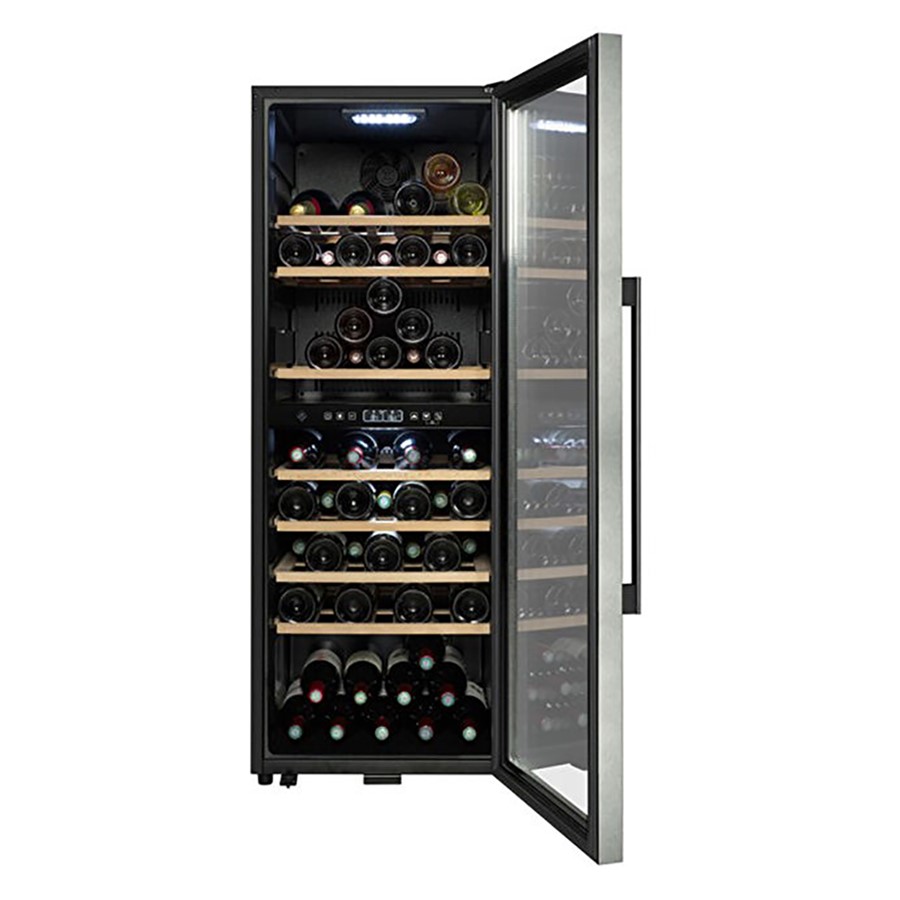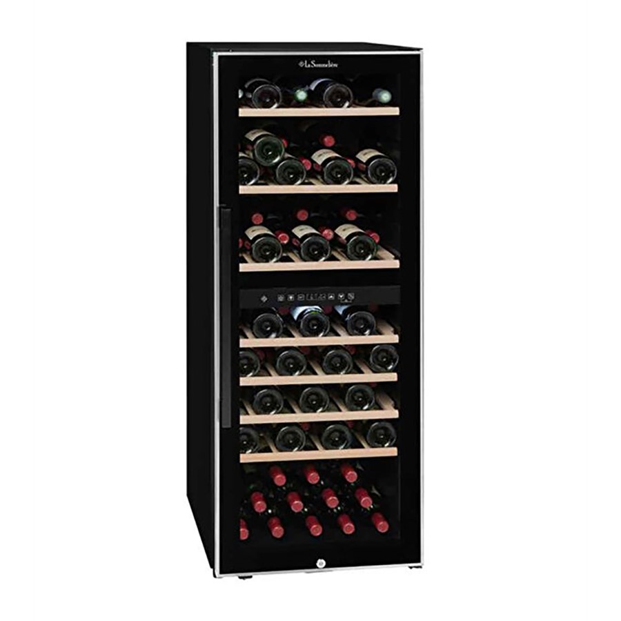 The La Sommelière ECS812Z is a sleek 75-bottle double-zone wine cellar, perfect for storing and aging your wines at the ideal temperatures. With two separate zones, it allows you to store reds and whites at their optimal conditions. Its modern design features an elegant glass door and a practical interior layout, offering both style and functionality. Energy-efficient with an Energy Label G, it ensures your wines are stored with care, while keeping energy consumption in check. The ECS812Z brings professional-grade storage to your home, ideal for any wine enthusiast.