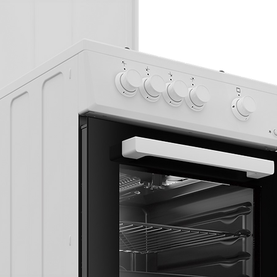 Upgrade your kitchen with the Beko FSG52020DW 50cm Freestanding Gas Cooker, designed for efficient and reliable cooking. With four high-efficiency gas burners, including a powerful 2.9kW burner, you can cook with precision and speed. The 55L gas oven offers A-rated energy efficiency, ensuring even heat distribution for delicious results. An integrated gas grill adds versatility, while the drop-down door and removable glass panel make cleaning effortless. The sturdy enamel pan supports provide stability, and the built-in gas safety device ensures peace of mind. Finished in classic white, this stylish and space-saving cooker is perfect for any modern home. Whether you're simmering, grilling, or baking, the Beko FSG52020DW delivers top performance every time! .