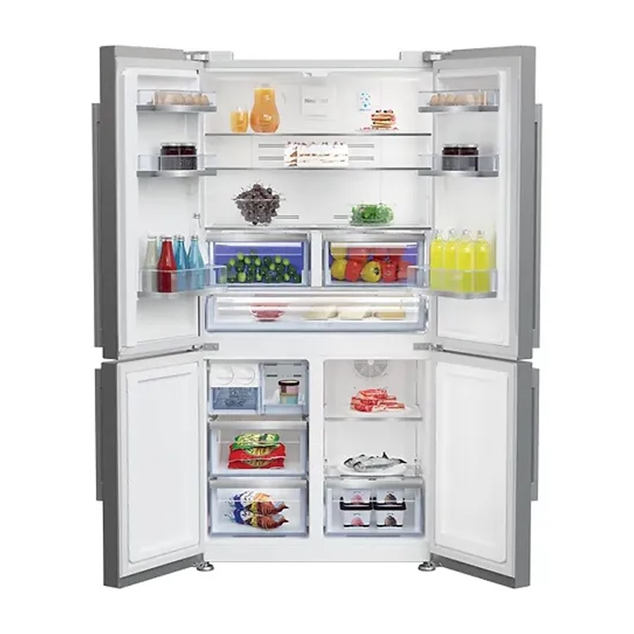 The GN1416231XPN is a high-capacity refrigerator by Beko, designed for optimal food storage with its spacious compartments and advanced cooling technology. Featuring a frost-free system, it ensures hassle-free maintenance and efficient cooling performance. This energy-efficient appliance boasts an A++ rating, offering eco-friendly operation while reducing electricity costs. Its sleek stainless steel finish and ergonomic design enhance kitchen aesthetics, while the reversible door provides flexible installation options. Ideal for households seeking reliable refrigeration solutions, the GN1416231XPN combines convenience with functionality, making it a perfect fit for modern homes prioritizing storage efficiency and sustainability.