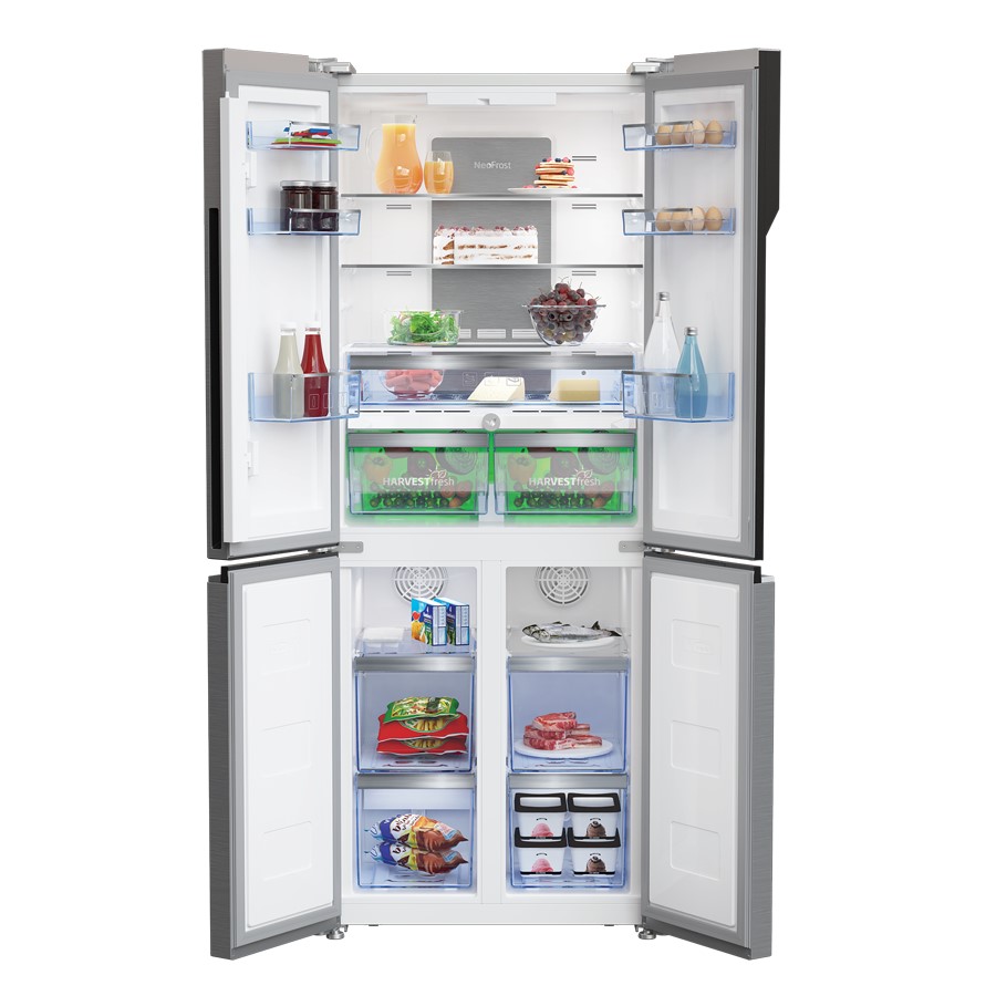 The GNE480E30ZXPN Multi-door Fridge Freezer in Titanium Inox offers modern features and high efficiency for a seamless kitchen experience. With its no-frost cooling system and ProSmart Inverter Compressor, it delivers fast cooling while saving energy and operating quietly. The fridge includes innovative technologies like HarvestFresh, which mimics the sun’s cycle to preserve vitamins in your fruits and vegetables, and EverFresh+ for extended freshness of produce. The CoolRoom compartment ensures meat, fish, and dairy stay fresh for longer, while Safety Glass shelves support heavy items without worry. With a spacious layout, including a generous fresh food compartment and bottom freezer, this fridge freezer is designed to keep your food fresh and organized with minimal effort.