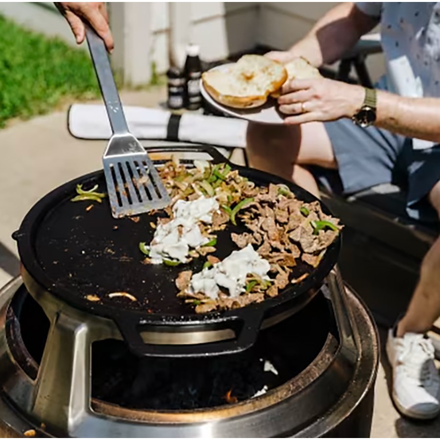 The GriddleTop-L is a cooking accessory designed for Solo Stove fire pits, providing a versatile cooking surface for outdoor meals. Made from durable, heat-resistant materials, the GriddleTop-L offers an even, flat surface perfect for grilling, frying, or sautéing a variety of foods. Its larger size makes it ideal for cooking meals for a group or family, ensuring efficient heat distribution over the open flame. The GriddleTop-L is easy to place on top of compatible Solo Stove fire pits, allowing you to expand your outdoor cooking options while enjoying the warmth and ambiance of the fire.