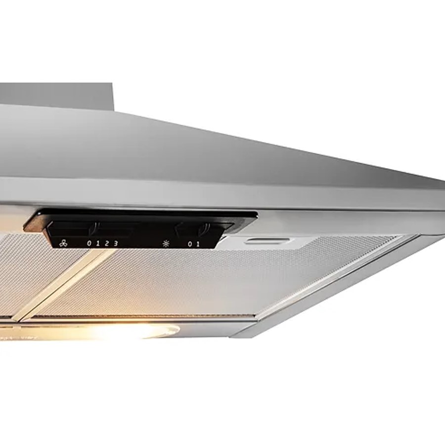 The range hood is a versatile kitchen appliance designed for efficient ventilation and an enhanced cooking experience. Featuring a sleek stainless steel construction, it offers three fan speeds to cater to varying cooking intensities. Equipped with two powerful motors and efficient grease filters, it ensures effective extraction of smoke, odors, and grease particles from the air. This hood includes two LED round lamps for ample cooking area illumination, enhancing visibility while minimizing energy consumption. Ideal for both ducted and ductless setups with charcoal filters, it combines functionality with modern design, perfect for contemporary kitchen environments.