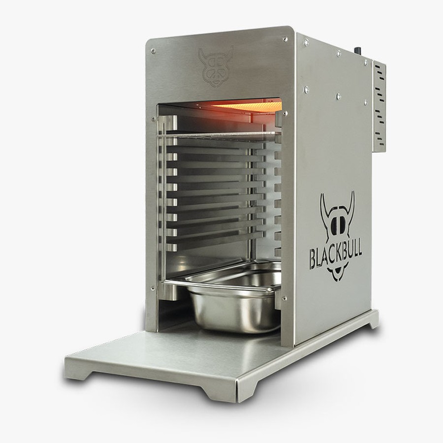 Due to the extremely high temperature of the ceramic burner, the meat changes its structure within seconds. This means less meat juice escapes. The meat remains very juicy and tender on the inside. The extreme heat creates a perfectly caramelized crust on the outside – the so-called Maillard reaction. Because the burner sits above the meat, the dripping fat does not produce any toxic fumes that would make the meat bitter.