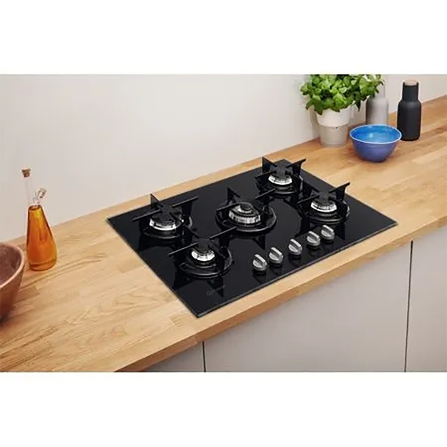 Indesit Hob Gas 5 Burner Black Glass