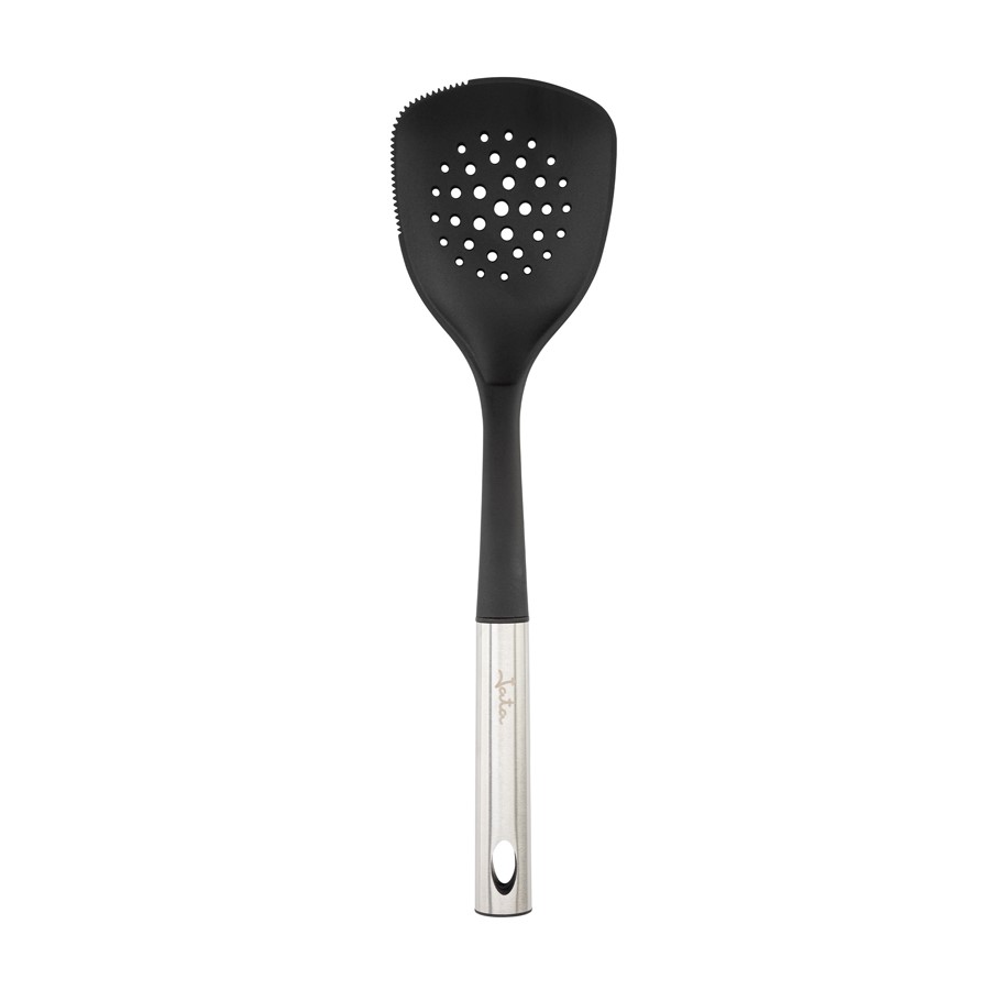 Elevate your culinary experience with the Jata HACC4624 Seven-Piece Kitchen Utensil Set, a fusion of functionality and sleek design. Crafted from durable nylon and stainless steel, these utensils are engineered to withstand temperatures up to 210°C, ensuring they won't scratch your cookware. The set includes essential tools: a soup ladle, slotted ladle, skimmer, pasta server, turner, and slotted spatula, each featuring ergonomically designed handles for a comfortable grip. A non-slip hook support is included for convenient storage, keeping your kitchen organized and your tools within easy reach.