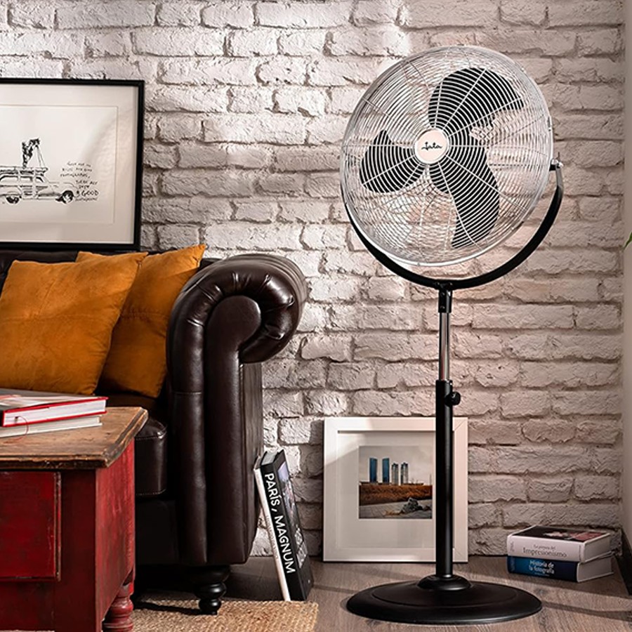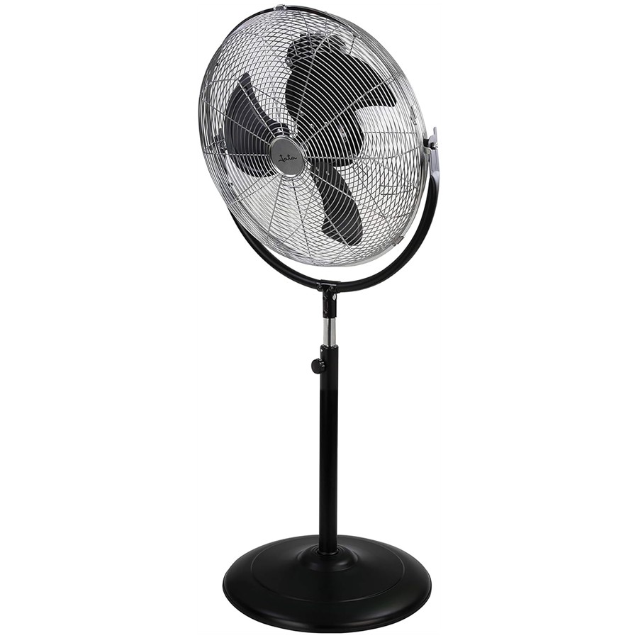 The Jata JVVP3055 industrial floor fan delivers robust and efficient performance, ideal for demanding environments. With three metal blades delivering an impressive 6,700 m³/h airflow and three adjustable speed settings, it keeps large spaces well-ventilated. The head tilts and oscillates, while the height extends up to 130 cm for tailored airflow direction. Despite its power, it remains quiet at 62 dB and energy-efficient with just 120 W consumption. Built from sturdy materials, it features front and rear metal safety grilles, easy-clean removable front grille, stable round base, cord storage, transport handle, and overheating protection—combining practicality with durability.