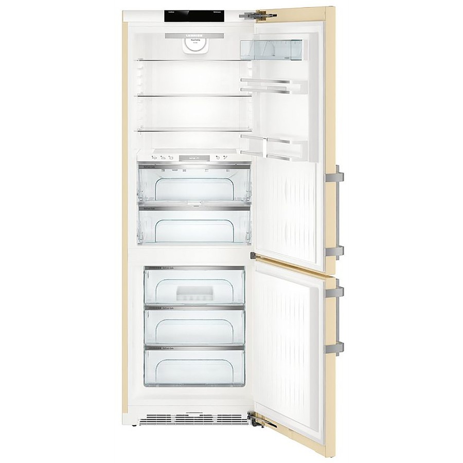 Elevate your kitchen with the Liebherr CBNbe 5775, a premium freestanding fridge-freezer that seamlessly blends advanced technology with elegant design. Boasting a generous total capacity of 381 liters—275 liters for refrigeration and 106 liters for freezing—this appliance is perfect for households seeking ample storage without compromising on style. The NoFrost system ensures you’ll never have to defrost again, while the BioFresh compartments maintain optimal humidity levels to keep fruits, vegetables, and meats fresher for longer. Its intuitive 7" touch display offers precise temperature control across three zones, and the DuoCooling system prevents odor transfer between compartments. With a sleek beige finish, tempered glass shelves, and energy-efficient LED lighting, the CBNbe 5775 not only performs exceptionally but also adds a touch of sophistication to any kitchen. Operating quietly at just 36 dB, it ensures a peaceful environment, making it an ideal choice for modern living spaces.