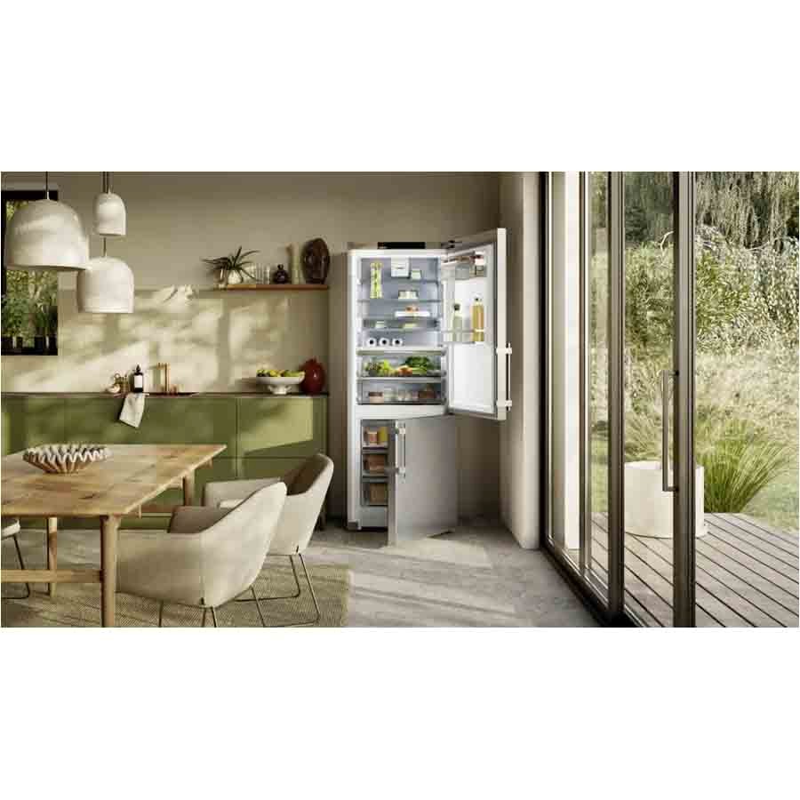 Boasting a generous 473 L capacity and whisper-quiet operation at just 33 dB, this Liebherr CBNsda 775i Prime fridge-freezer combines thoughtful design with exceptional functionality. The innovative BioFresh compartments preserve your most delicate perishables meat and dairy at just above 0 °C, and fruit and vegetables in a perfectly humid-sealed zone without any manual adjustments needed