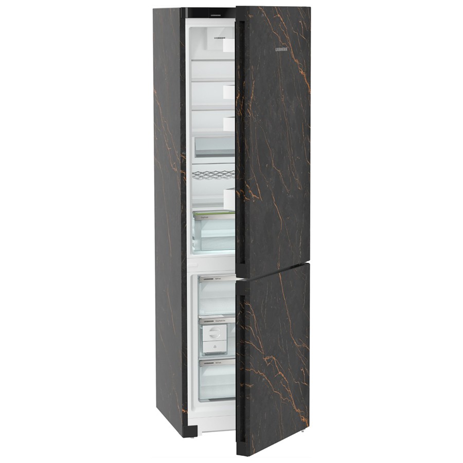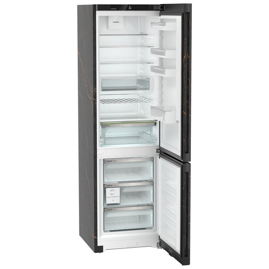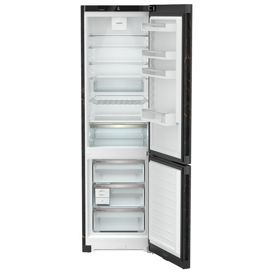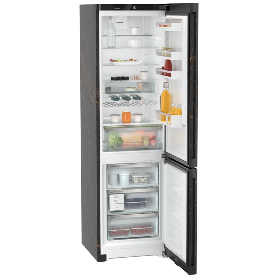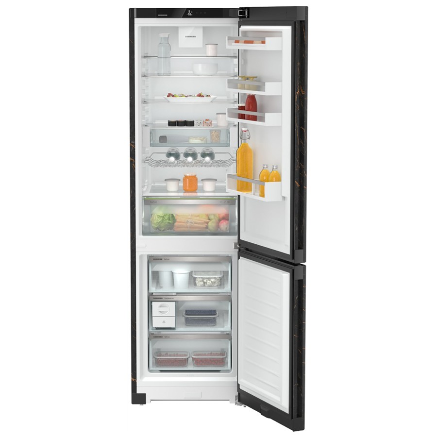 Upgrade your kitchen with the impressive Liebherr CNBBD 5723-20 Plus freestanding fridge-freezer, finished in stylish Black Bilbao. With a generous 371 L capacity (268 L fridge + 103 L freezer), EasyFresh drawers preserve fruits and vegetables in optimal humidity, while NoFrost technology ensures you'll never have to defrost again. DuoCooling keeps fridge and freezer circuits separate to prevent odor transfer and maintain ideal food conditions. Its SmartSteel exterior resists fingerprints and scratches, and the intuitive touch display makes controlling SuperCool and SuperFrost features effortless. Designed for convenience and performance, this sleek 201.5 cm high appliance also includes reversible doors and front ventilation, making it a seamless fit for modern kitchens.