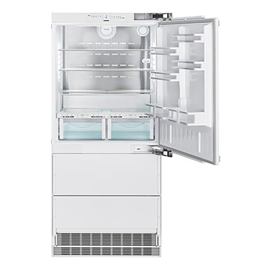 The Liebherr is a premium built-in refrigerator offering exceptional performance and sleek design. It features dual refrigeration zones for both fridge and freezer compartments, ensuring that food stays fresh for longer. The BioFresh technology maintains optimal humidity and temperature to extend the shelf life of perishable items. Its NoFrost function eliminates the need for manual defrosting, while the IceMaker ensures a constant supply of ice. With generous storage capacity, customizable shelving, and efficient LED lighting, this model blends functionality with elegance. It is energy-efficient and relatively quiet, making it ideal for modern kitchens. The high-end pricing is justified by its advanced features and durability, but it may not be suitable for budget-conscious buyers.