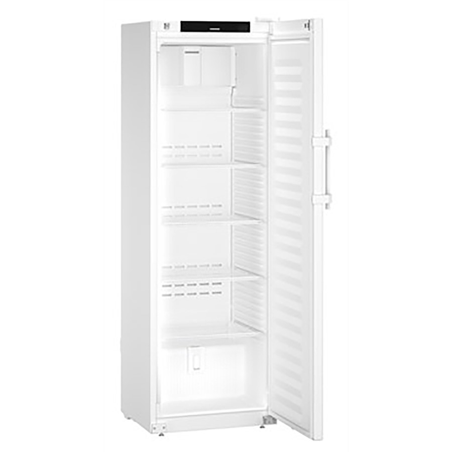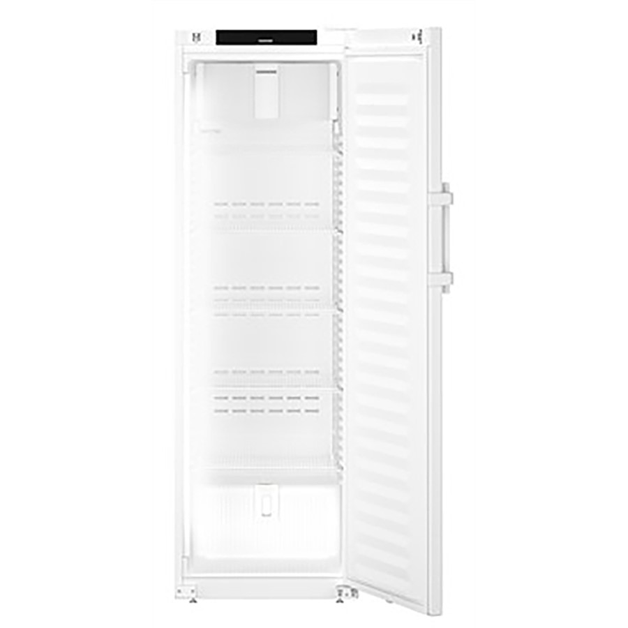 This Liebherr product is a highly efficient medical and pharmaceutical refrigerator, ideal for the safe storage of temperature-sensitive items like medicines and vaccines. With a preset temperature of 5°C and fan-assisted cooling, it ensures stable conditions to meet DIN 13277 standards. It includes advanced features such as an electronic door lock, temperature memory, and an integrated alarm system that alerts users to door openings or power failures, preventing any temperature fluctuations. Additionally, it has an automatic defrost function and energy-efficient operation, consuming about 172 kWh annually. This refrigerator also comes with network connectivity (WiFi/LAN), making it easy to monitor remotely through its data logger. For ease of use, it includes a touch display and options for either shelves or drawers, accommodating different storage needs. Designed with functionality in mind, the door hinges are reversible, and the operation is both quiet and eco-friendly, making it a popular choice in pharmaceutical environments.