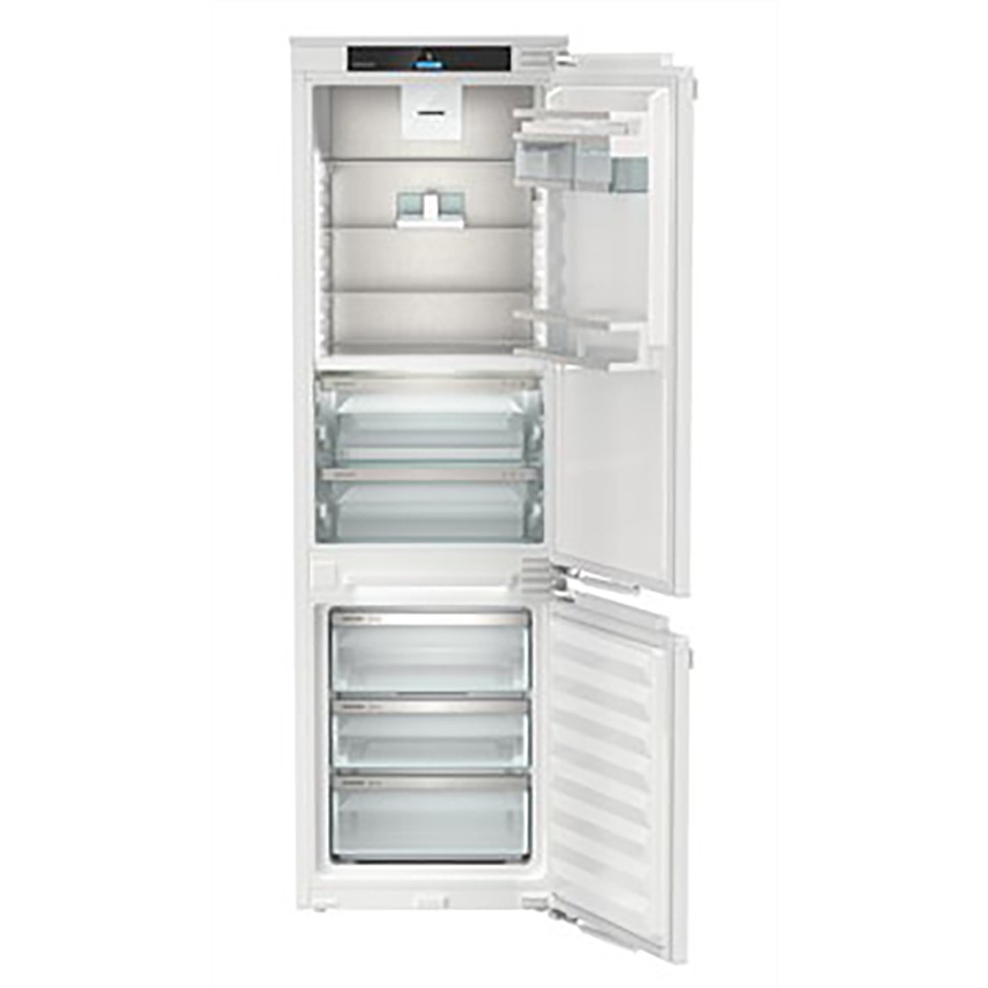 This Liebherr Fridge Freezer is a premium, built-in refrigerator offering top-notch energy efficiency, advanced cooling technology, and a sleek design. It features DuoCooling technology, ensuring separate temperature control for the fridge and freezer compartments, preventing odors from mixing and optimizing food freshness. With BioFresh drawers, it keeps fruits, vegetables, and meats fresher for longer by maintaining precise humidity levels. The NoFrost freezer eliminates the need for manual defrosting, while the SoftSystem door mechanism ensures a smooth, cushioned door closure, even when fully stocked. Its Energy Rating A+++ guarantees low energy consumption, making it an eco-friendly choice. The internal LED lighting offers clear visibility without generating heat, contributing to temperature consistency. Overall, the Liebherr is ideal for those seeking high performance, modern features, and efficient cooling in a stylish, built-in design.