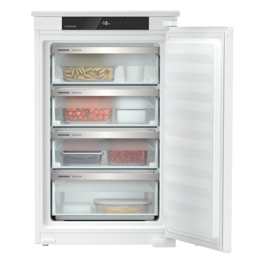 The Liebherr is a premium built-in freezer that stands out for its robust design, efficient performance, and thoughtful features. With a sleek, integrated look, it blends seamlessly into modern kitchens. Its SmartFrost technology ensures minimal defrosting. The unit is spacious, offering well-organized storage with adjustable glass shelves and transparent drawers for easy visibility and access. It operates quietly and is highly energy-efficient, meeting stringent D energy ratings. The freezer also includes advanced features like SoftSystem door technology, which ensures gentle door closing even when fully loaded. The touch controls and LED display make it user-friendly, allowing for precise temperature adjustments.