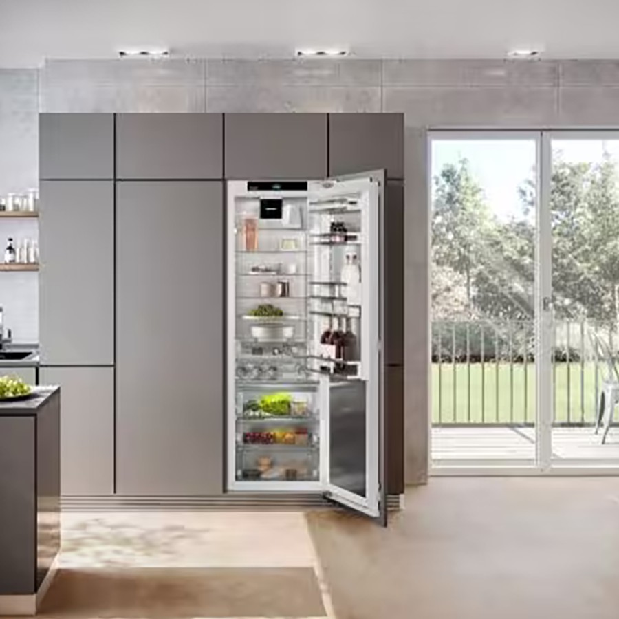BioFresh Professional zones with precise 0°C storage keep meat, dairy, fruits, and vegetables fresher, longer HydroBreeze misting supplies a light humidity boost every 90 minutes, and also each time you open the door – helping maintain crisp freshness with a premium visual effect Hands Free Convenience & Smart Features AutoDoor: open/close the door via knock, voice command, or smartphone, ideal for a handle-free integrated design Touch & Swipe 2.4″ colour display allows easy control of functions like SuperCool, door alarms, NightMode, and display lock Smart Device Box & Wi Fi connectivity enables remote monitoring and control via Liebherr’s app
