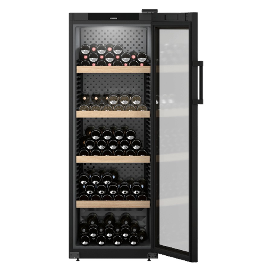 Preserve your wine collection with the Liebherr WPbl 5001 GrandCru, a freestanding wine cabinet designed to store up to 196 Bordeaux bottles. Its single temperature zone, adjustable between +5°C and +20°C, ensures optimal conditions for long-term storage. The cabinet features five beech wood shelves, including four pull-out shelves, and a triple-glazed solid black door for UV protection. Additional features include a Touch & Swipe display, LED lighting, FreshAir filter, and low-vibration compressor to maintain wine quality. With a sleek black finish and energy consumption of 113 kWh/year, it combines functionality with style.