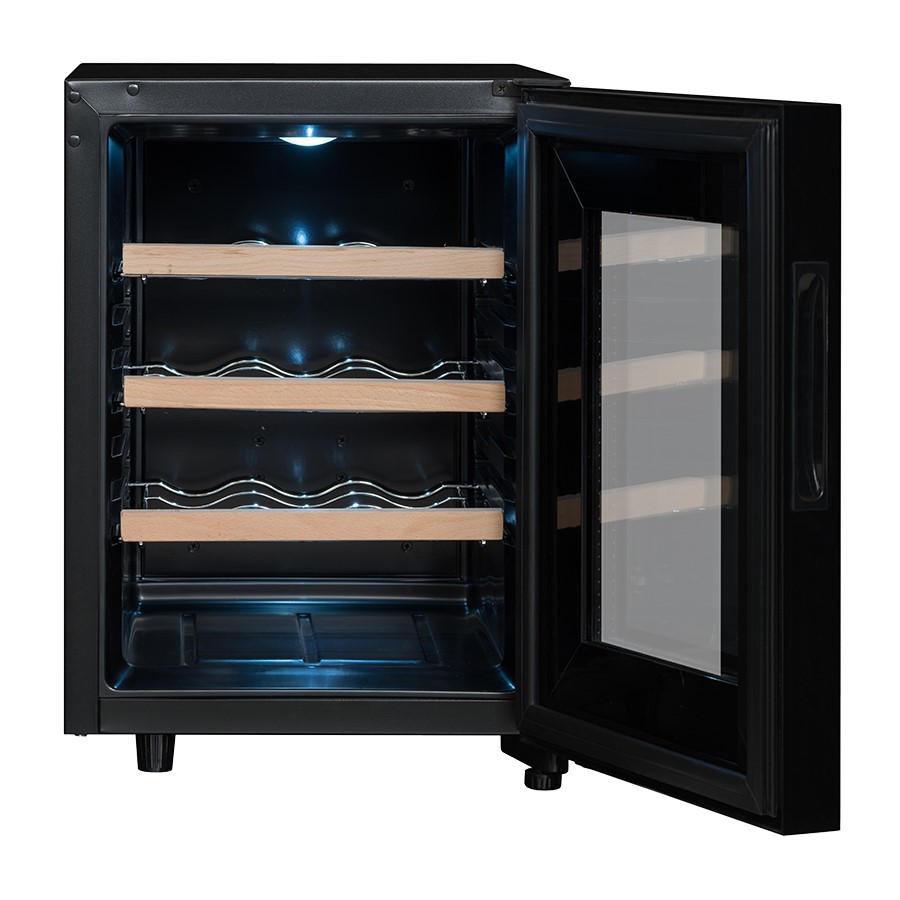 Discover the service wine cellar, designed to hold up to 12 bottles, offering perfect storage for your favorite wines. Thanks to its advanced hybrid technology, it ensures minimal energy consumption of just 95 kWh annually, while operating at a quiet 26 dB for seamless integration into any room. The temperature range of 11°C to 18°C guarantees optimal conditions for your wines, and its compact size (34.5 x 46 x 48 cm) makes it easy to fit into any space. Additionally, it comes equipped with 3 steel wire shelves and a digital thermometer for precise control.