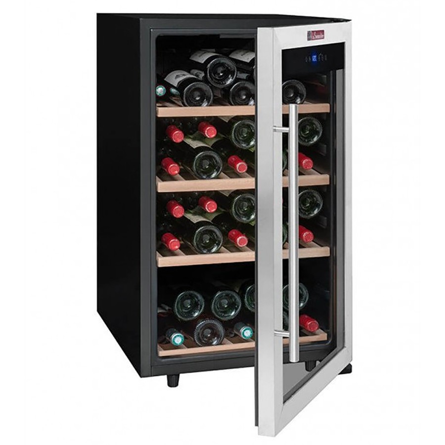 The Le Sommelière LS52A is a stylish and eco-friendly service temperature wine cellar, designed for wine lovers who appreciate both functionality and modern aesthetics. With a 52-bottle capacity, this black and stainless steel unit features an anti-UV glass door with a soft-touch control panel, ensuring optimal protection and easy operation. Its electronic thermostat with digital display allows precise temperature control between 5°C and 20°C, while the forced air system and controlled humidity (50-80%) create the perfect storage conditions. Equipped with 3 wooden shelves + 1 half-shelf (beech), an anti-vibration system, and internal LED lighting, it beautifully showcases and preserves your collection. Energy-efficient (146 kWh/year, Class G) and designed for convenience with adjustable front feet and a back wheel, this VINOTAG-compatible wine cellar is the perfect addition to any home, offering elegance, reliability, and professional-grade storage.