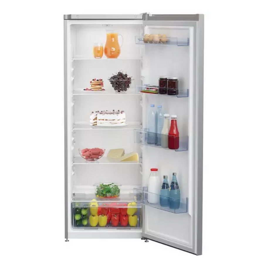 This spacious Beko Larder fridge has a 252-litre capacity, offering ample storage for all your fresh food needs. Its defrosting technology eliminates the need for manual defrosting and ensures hassle-free maintenance. Inside, the fridge is equipped with bright LED lighting, providing clear visibility of all your stored items. With adjustable glass shelves, a large vegetable crisper, and door racks, it offers flexible storage options, making it an ideal choice for larger households. The fridge also has a reversible door for versatile installation and comes in a sleek inox finish.