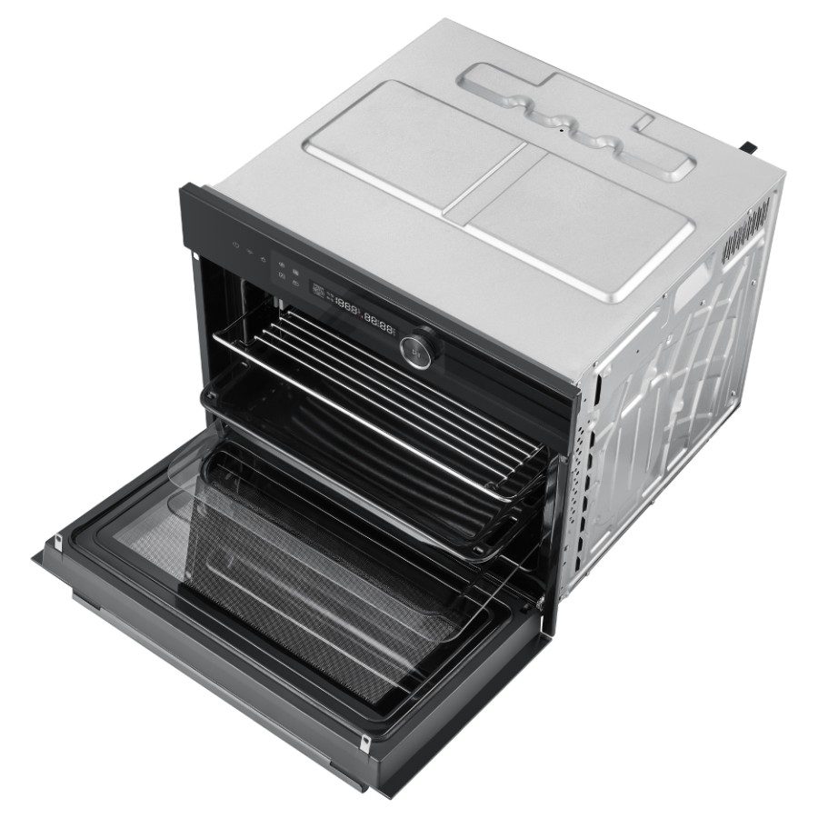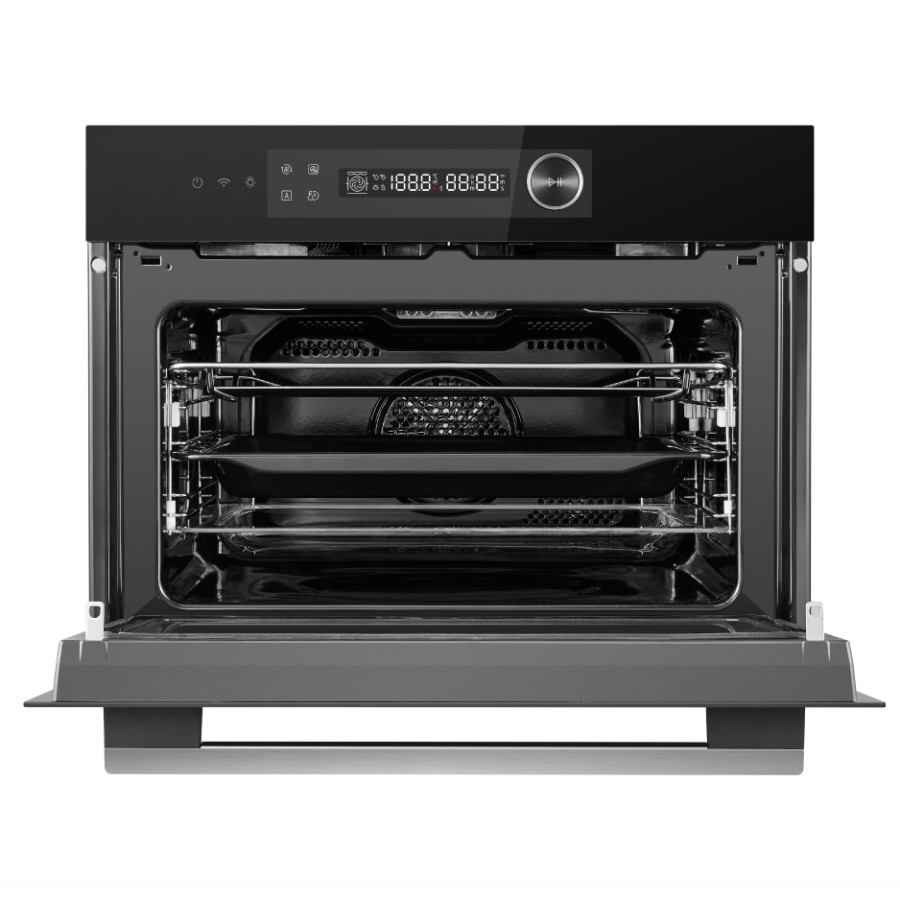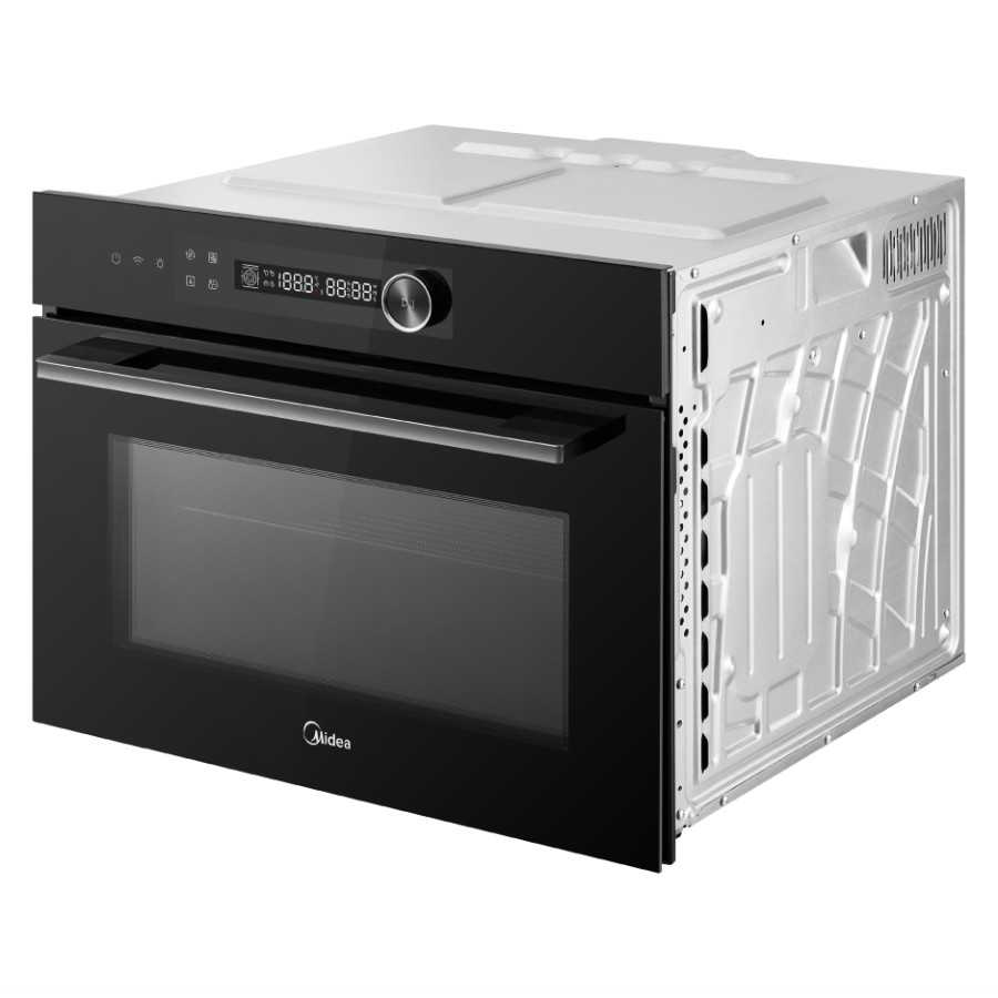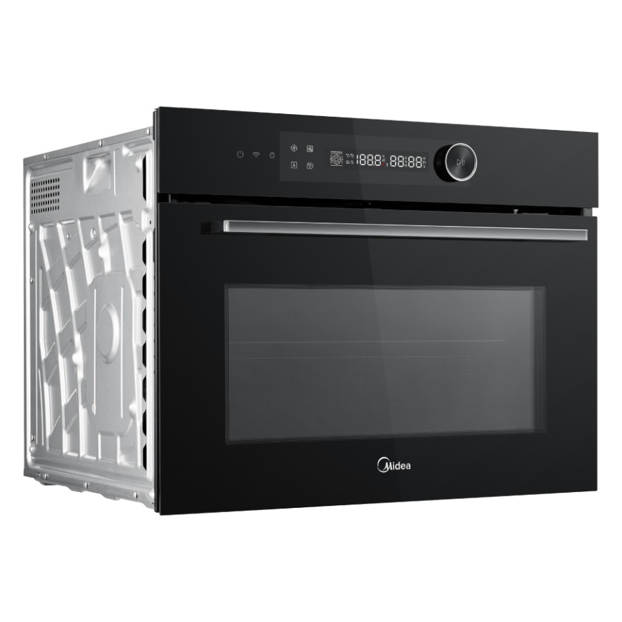 The Midea 50L Combi Compact Oven offers versatile cooking with microwave, grill, and convection functions. It features a sleek black design, 900W microwave power, and 2200W grill. With a touch LED display, 8 auto cooking menus, and IoT connectivity, this built-in oven is perfect for efficient, smart cooking. Safe and convenient with a child lock and drop-down door.
