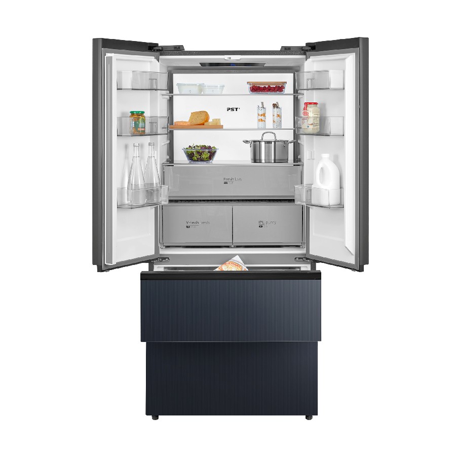 The Midea French Door Insta-Fit Master Series Fridge Freezer combines generous 515L capacity with smart technology for effortless everyday convenience. Featuring No Frost technology, Multi Air Flow cooling, and Wi-Fi connectivity via the Midea SmartHome App, it keeps your groceries fresher for longer. With a spacious French door design, and dedicated storage zones including three vegetable crispers and deep freezer drawers, it’s the perfect blend of style, efficiency, and modern functionality for any kitchen.