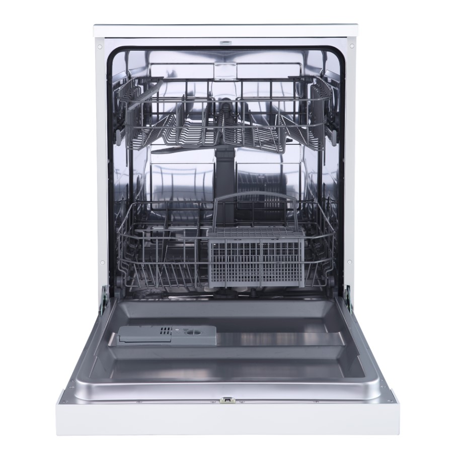 The sleek white Midea Freestanding Dishwasher combines style, efficiency, and convenience. It accommodates 12 place settings with a dedicated cutlery basket and offers 4 versatile programs via an intuitive digital control panel.