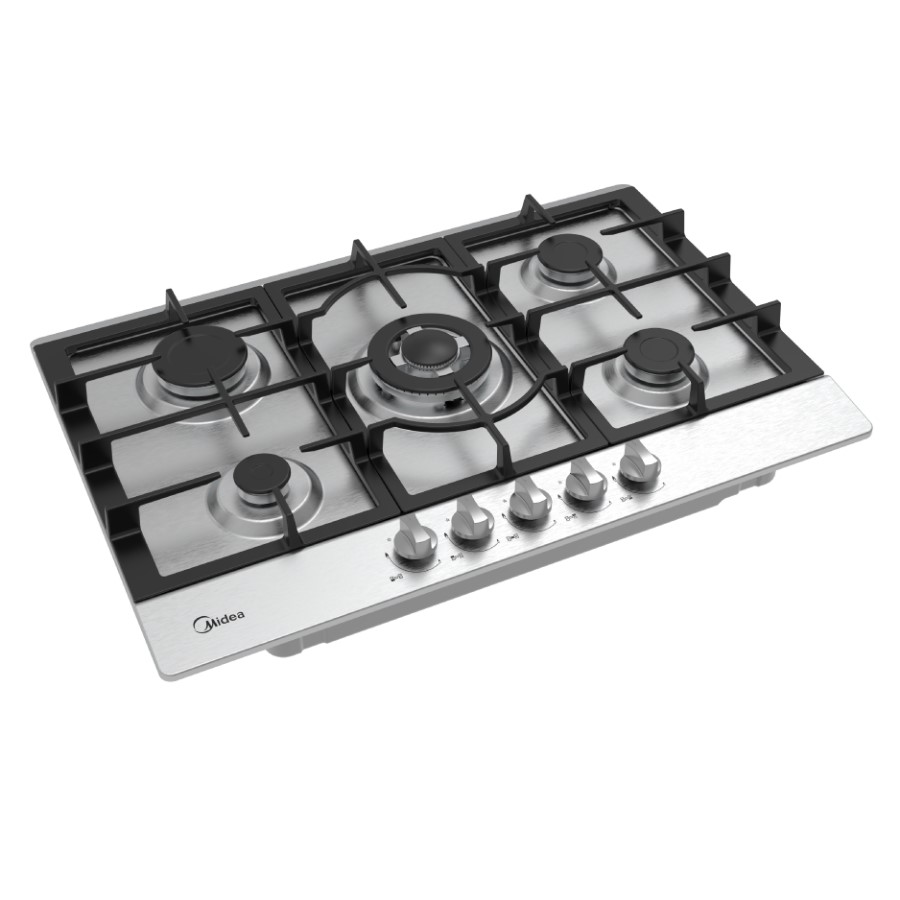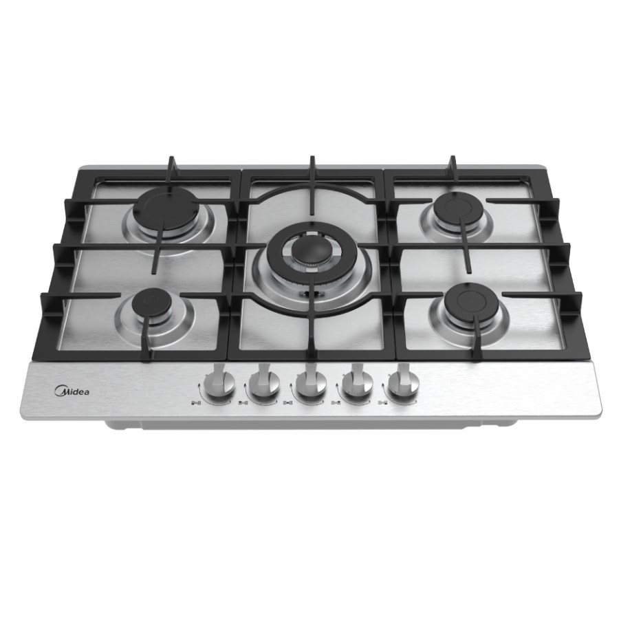 Discover the Midea Built-in Gas Hob, a 75cm stainless steel powerhouse for your kitchen. It features five burners: one triple crown (3.8 kW), one rapid (3.0 kW), two semi-rapid (1.75 kW), and one auxiliary (1.0 kW), catering to all your cooking needs. The hob boasts mechanical controls, electronic ignition, and a frontal dashboard for easy operation. Cast iron grills and a flame failure device ensure safety and durability. Certified with CE, RoHS, and REACH, this hob offers top-notch efficiency and style.