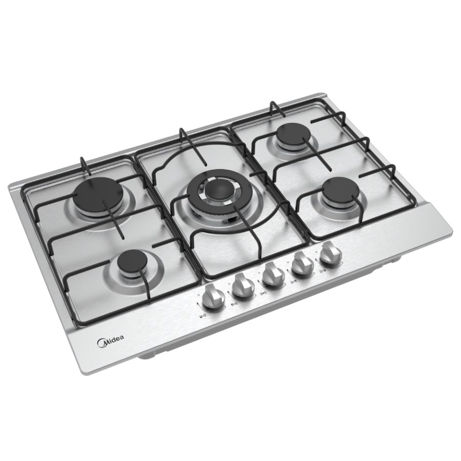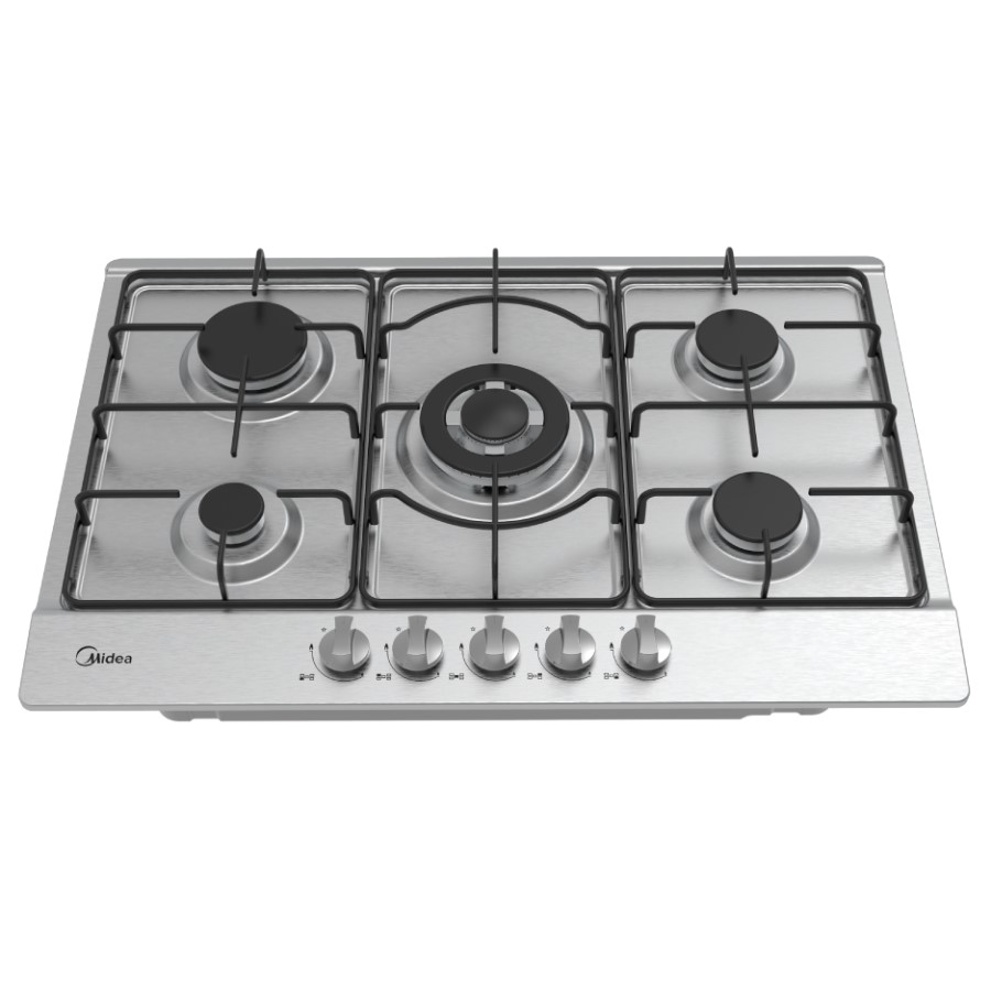 Discover the Midea Built-in Gas Hob, a 75cm stainless steel masterpiece ideal for any kitchen. It boasts five gas burners: one triple crown (3.8 kW), one rapid (3.0 kW), two semi-rapid (1.75 kW), and one auxiliary (1.0 kW), offering flexible cooking options. With mechanical controls, electronic ignition, and a frontal dashboard, it ensures user-friendly operation. The hob also features enamel grills and a flame failure device for safety. Certified with CE, RoHS, and REACH, it perfectly blends efficiency, style, and reliability.