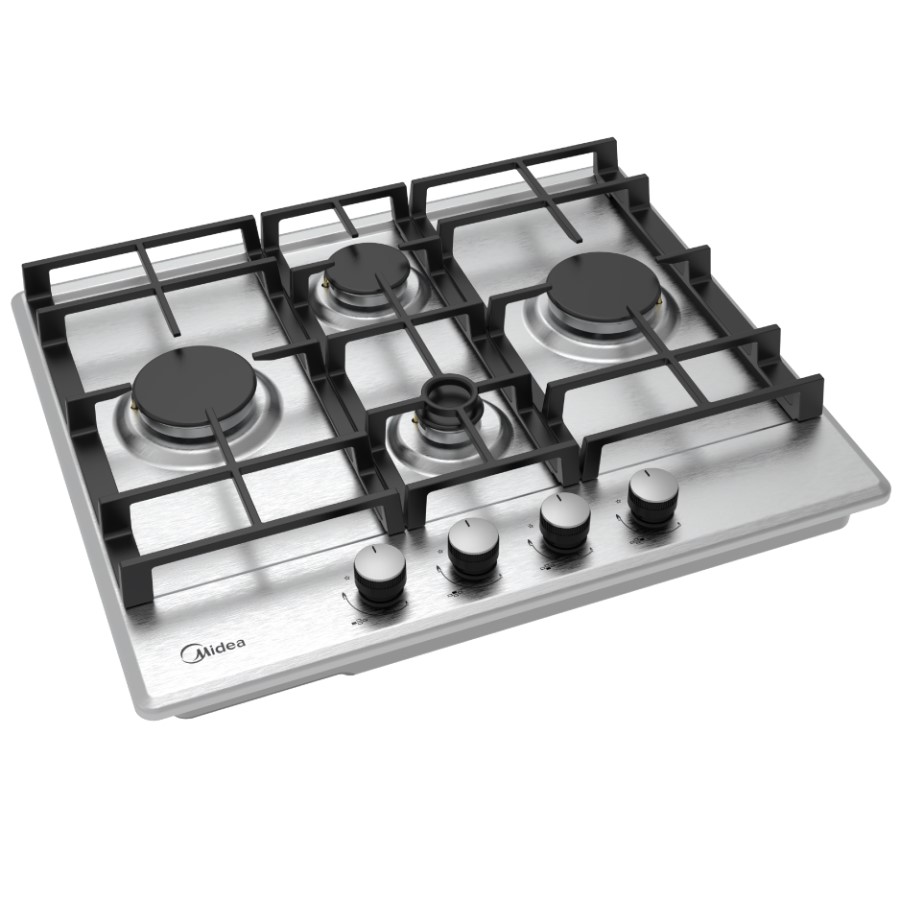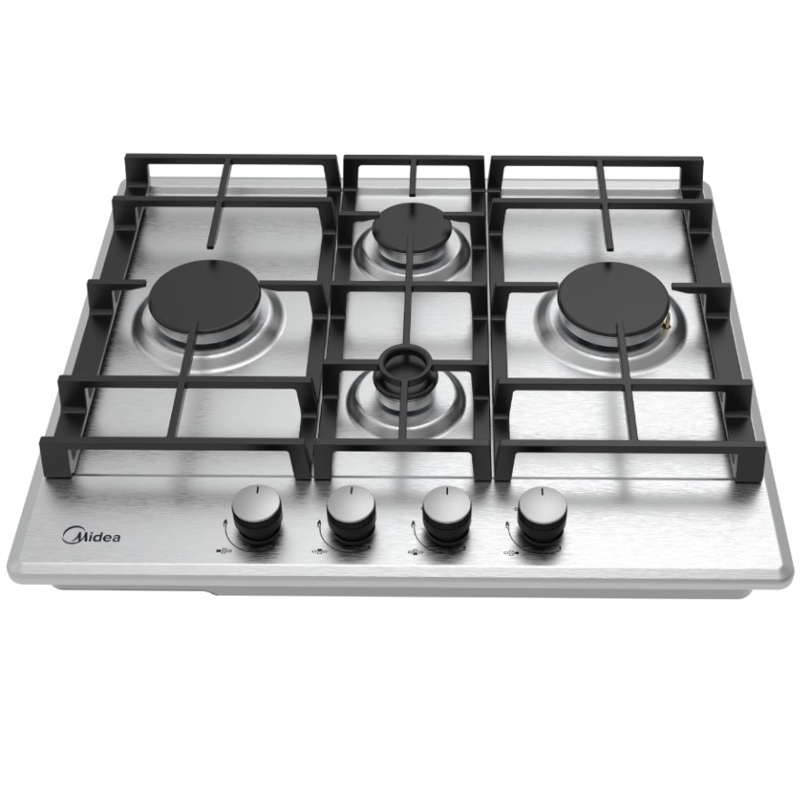 Introducing the Midea Built-in Gas Hob, a 60cm stainless steel marvel designed for any kitchen. This hob features four gas burners: two rapid (3 kW), one semi-rapid (1.75 kW), and one auxiliary (1 kW), offering versatile cooking options. Mechanical controls and electronic ignition ensure ease of use, while the front dashboard provides added convenience. Equipped with cast iron grills and a flame failure device, this hob guarantees safety and durability.