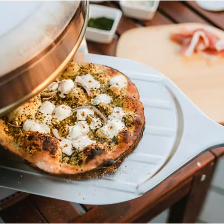 The Solo Stove Stainless Peel is a premium pizza peel designed for use with Solo Stove pizza ovens. Made from durable stainless steel, it offers a smooth, non-stick surface for easily transferring pizzas in and out of the oven. The long, ergonomic handle ensures a safe, comfortable grip, keeping your hands away from the heat. Its sleek, modern design not only adds a touch of style but also ensures durability and long-lasting performance. Perfect for both home and outdoor pizza making, this peel helps you handle pizzas with ease and precision.