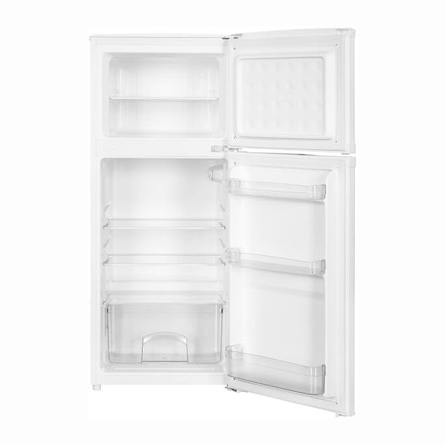 The Frigelux RDP151BE is a compact, double-door fridge-freezer ideal for smaller spaces. With a total capacity of 151 L (112 L fridge, 39 L freezer), it features automatic fridge defrost, LED lighting, and adjustable shelving for flexible storage. Energy-efficient (Class E, 177 kWh/year) and quiet (40 dB), it also includes reversible doors and a freezing capacity of 2.4 kg/day. Perfect for studios, small kitchens, or as a secondary fridge.