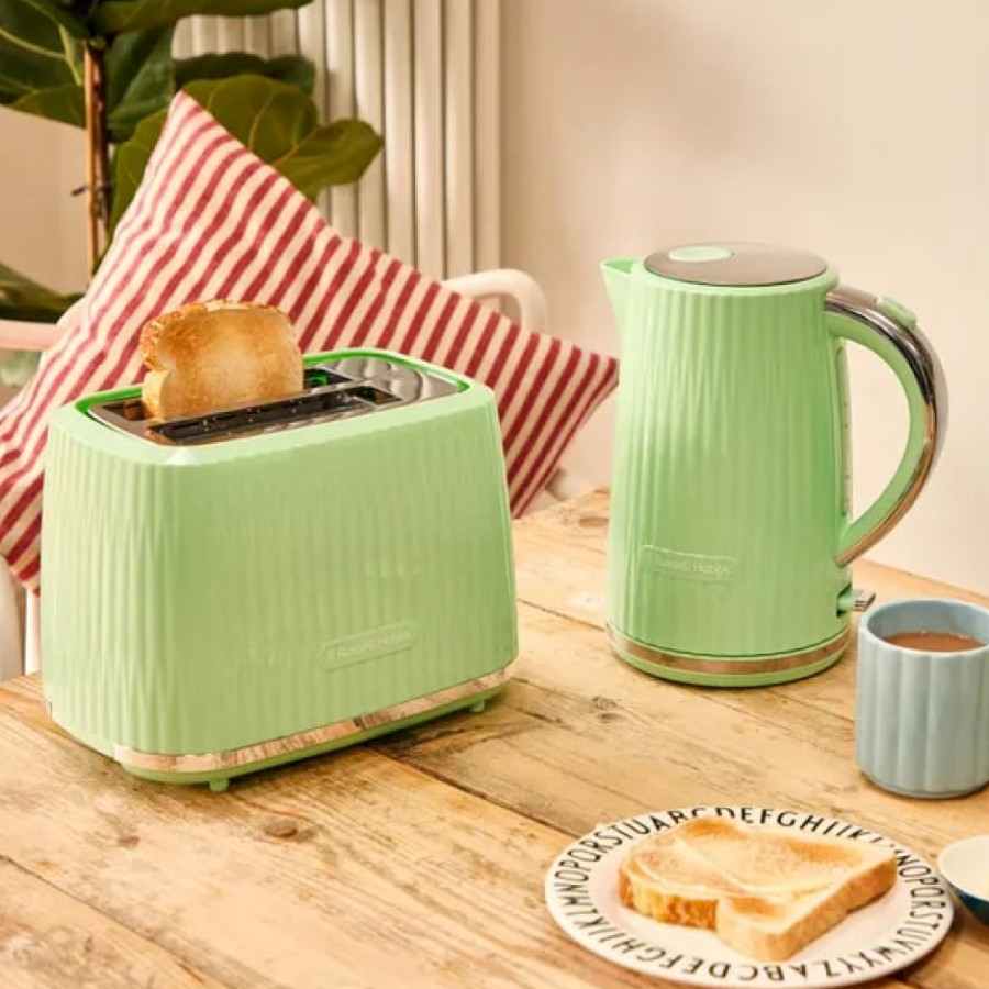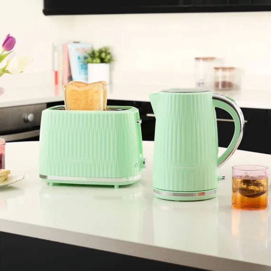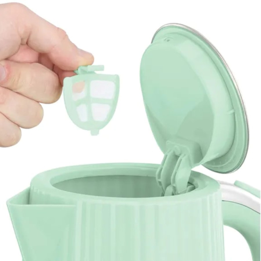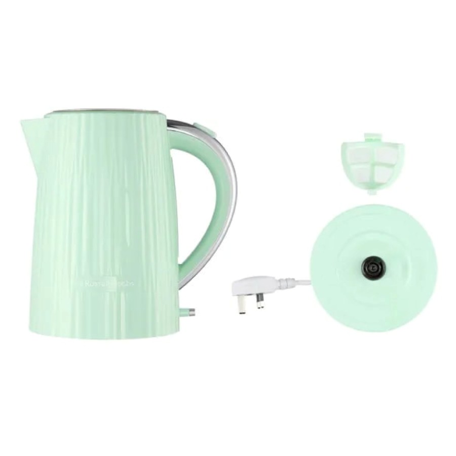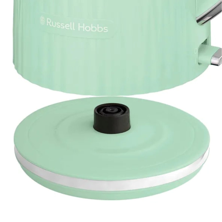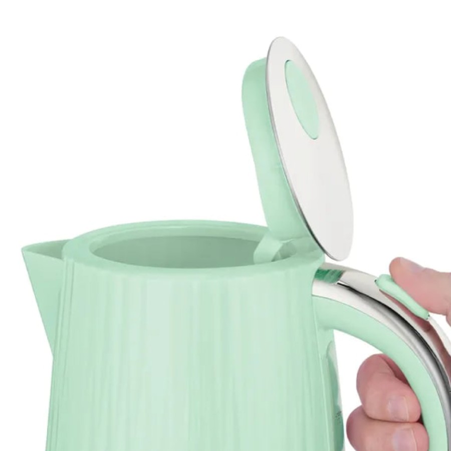 Stylish and efficient, the Russell Hobbs Eden Kettle features a soft pistachio, grooved design with a discreet water window and gauge for energy-saving boils. Enjoy easy filling and pouring with a push-button lid, perfect pour spout, and 360° base with cord storage. An illuminated power switch and easy-reach controls add extra convenience.